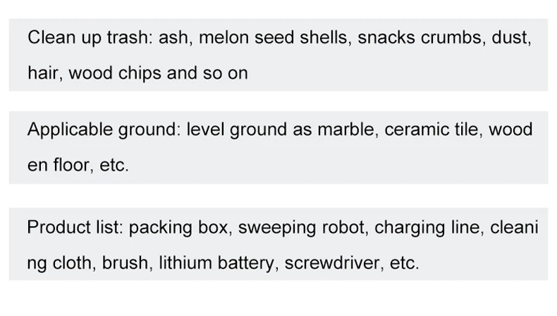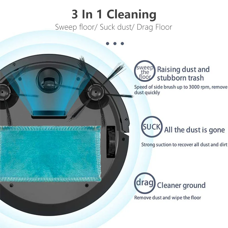 Описание: -----Fi-клик для чистки, легкий и прочный в использовании------ Подметание, очистка и мытьё полов, очистка в одном шагеУмный датчик против падения, оснащенный датчиком обнаружения падения, избегайте падения-Низкий уровень шума, удобно чистить пол------ Используется для различных материалов для мытья половUsb-зарядка, удобна в использовании------ Утонченная конструкция доси, легкоочищающийся в нижней части мебели, без мертвого Уггла