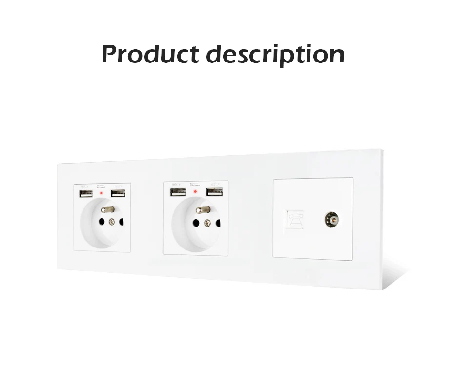UNKAS PC пластиковая двойная французская стандартная розетка с 4 usb-портом для зарядки + RJ11 телефонный разъем + ТВ разъем