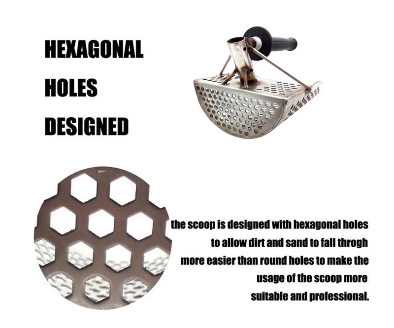 Made of fine quality material, practical, easy to operate and use, wide application range, has a long service life. Features: Made of fine quality stainless steel, wear-resistant, not easy to rust. Compact and lightweight. Designed specifically for search on the beach, underwater search and surf. Universal model. Perfect for water and surf lines. Ground conditions: sand with silt or clay, clay and silt clogged sand with shells and stones. Has perfect washing ability. Fine in using a metal detector on the clean sandy beaches that attract many vacationers. The handle design is more labor-saving and convenient. Specifications: Material: stainless steel Color: silver Length: 290mm / 11.4in Width: 200mm / 7.9in Steel thickness: Approx. 1.5mm / 0.06in Tophole: Approx. 28mm / 1.1in Package size: 350 * 230 * 190mm / 13.8 * 9.1 * 7.5in Package weight: 1300g / 2.9lb Package list: 1 * Beach Sand Scoop