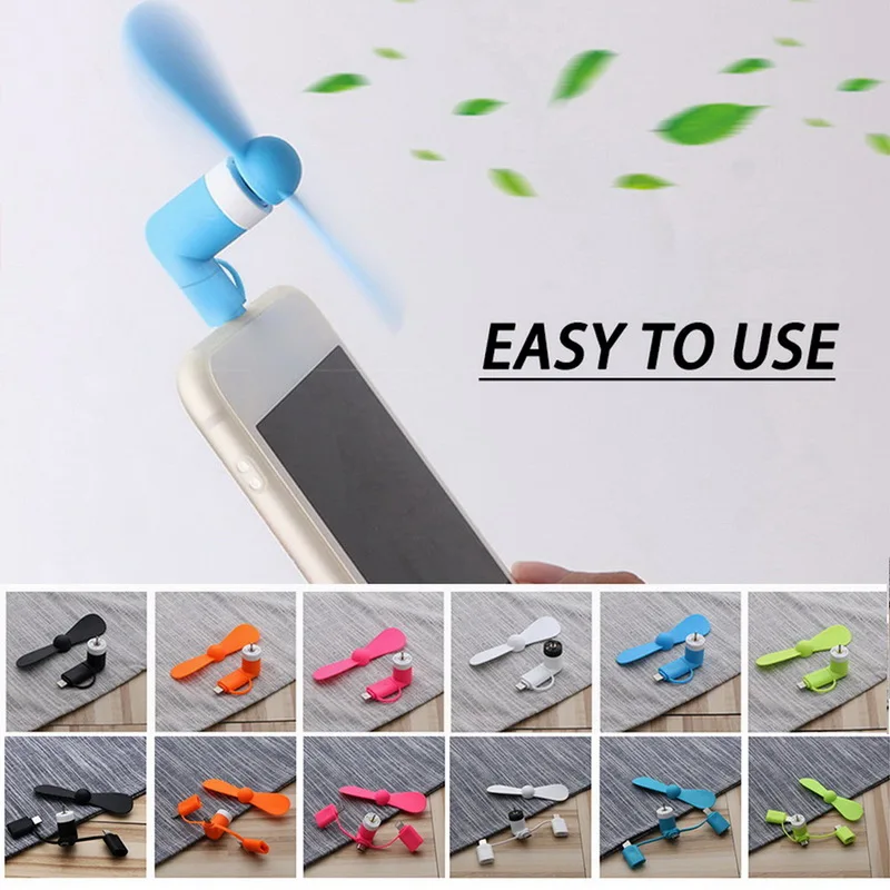 < 2 in 1 design: Fan work with Micro USB Android phones, tablets and iphone