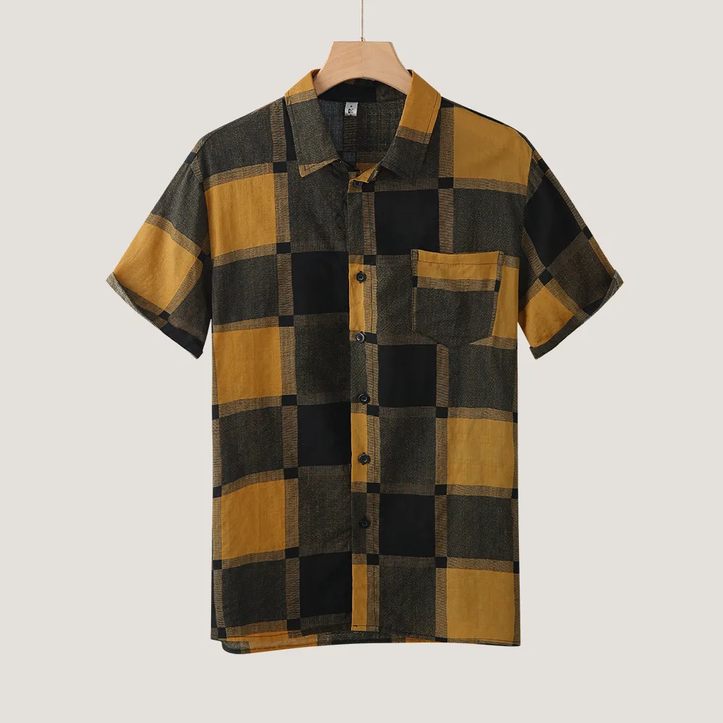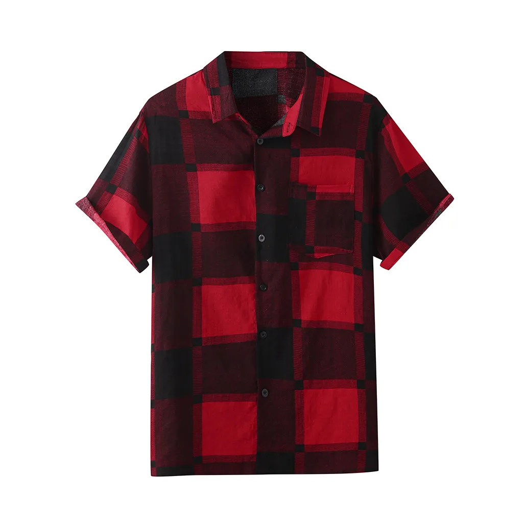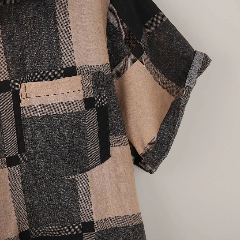 3. Отложной воротник, КороткийС длинными рукавами, на пуговицахПовседневная летняя футболка в клетку.