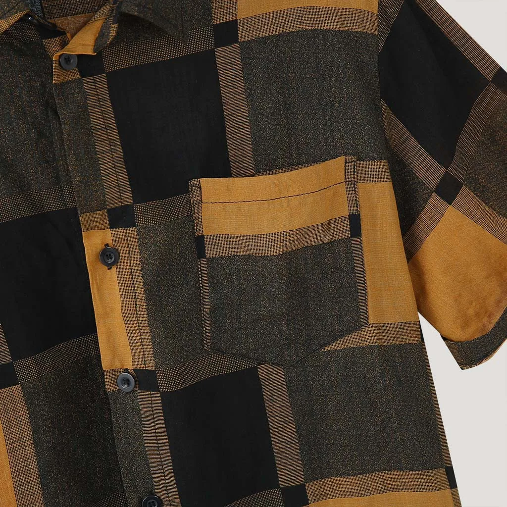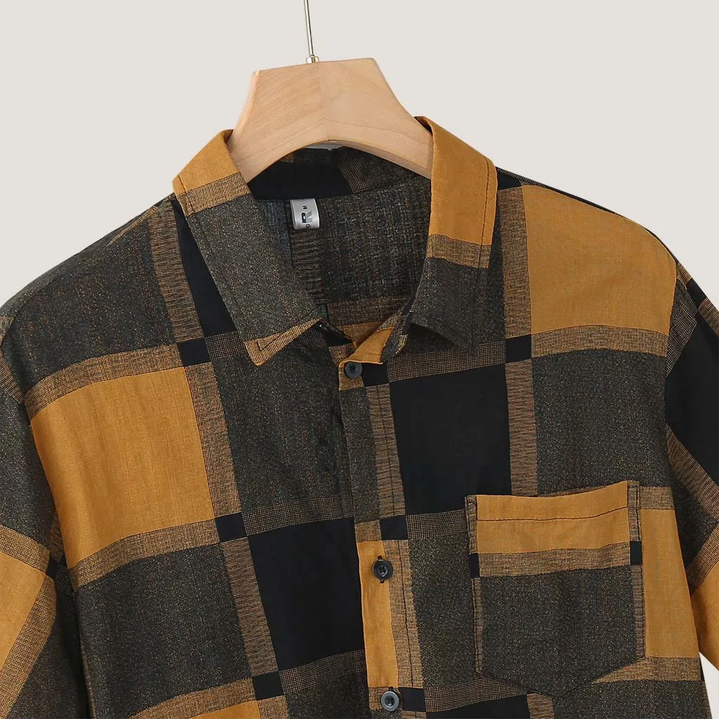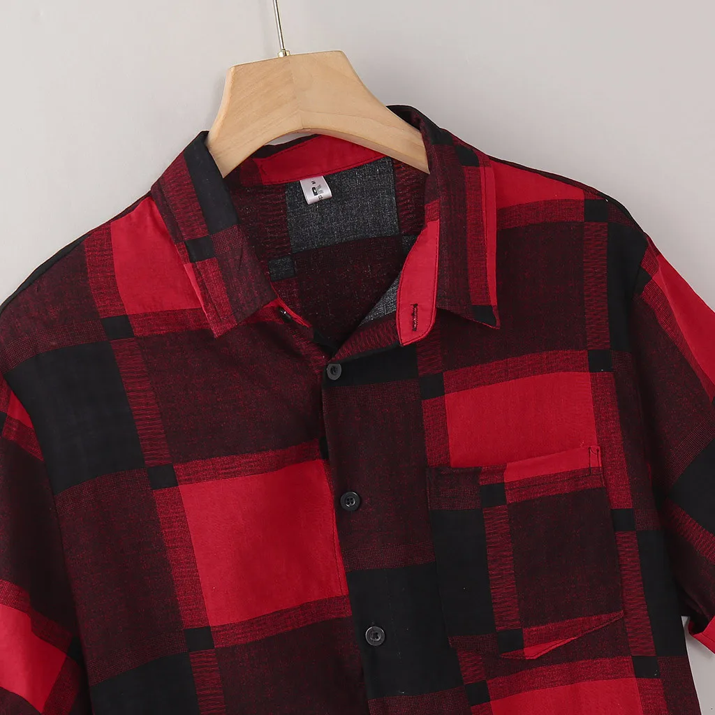 3. Отложной воротник, КороткийС длинными рукавами, на пуговицахПовседневная летняя футболка в клетку.