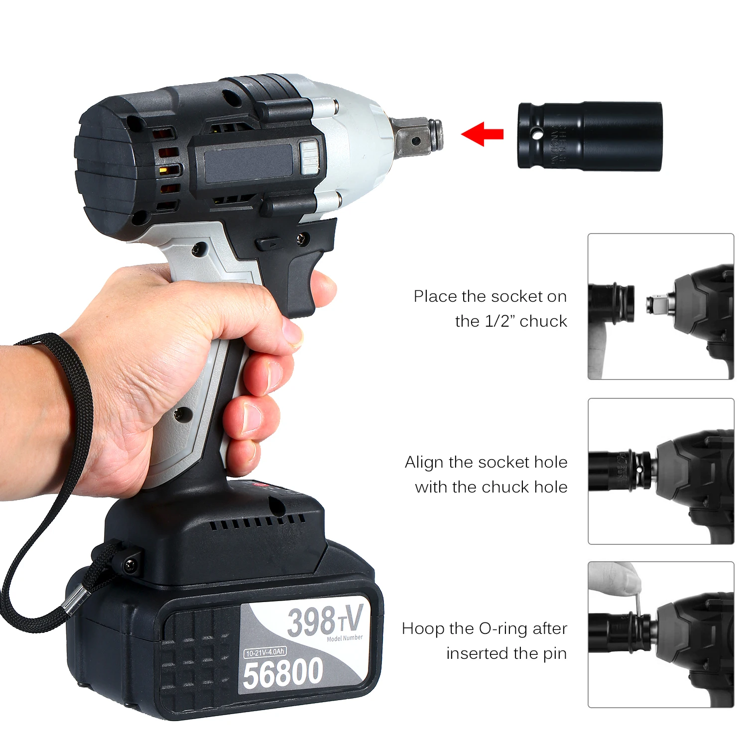 Мощный бесщеточный ударный гайковерт --- мощный двигатель может доставить крутящий момент до 980нм (8673,74 lbf.in), который идеально подходит для затяжки гаек и ослабления болтов. Его высокий крутящий момент также способен заниматься ремонтом автомобилей, крупными строительными проектами, обслуживанием тяжелого оборудования или сборкой продукта.