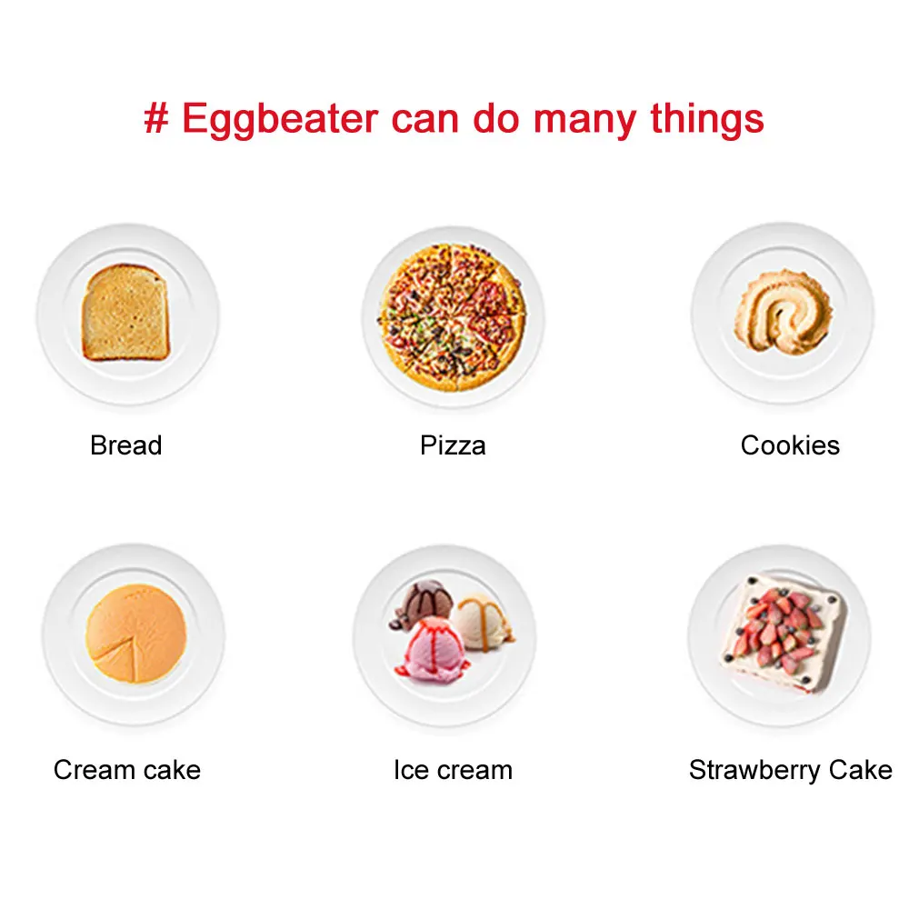 -Этот уникальный дизайн может предоставить вам удобный и безопасный пользовательский опыт при изготовлении ингредиентов, баттеров, взбивания теста, крема и яиц.