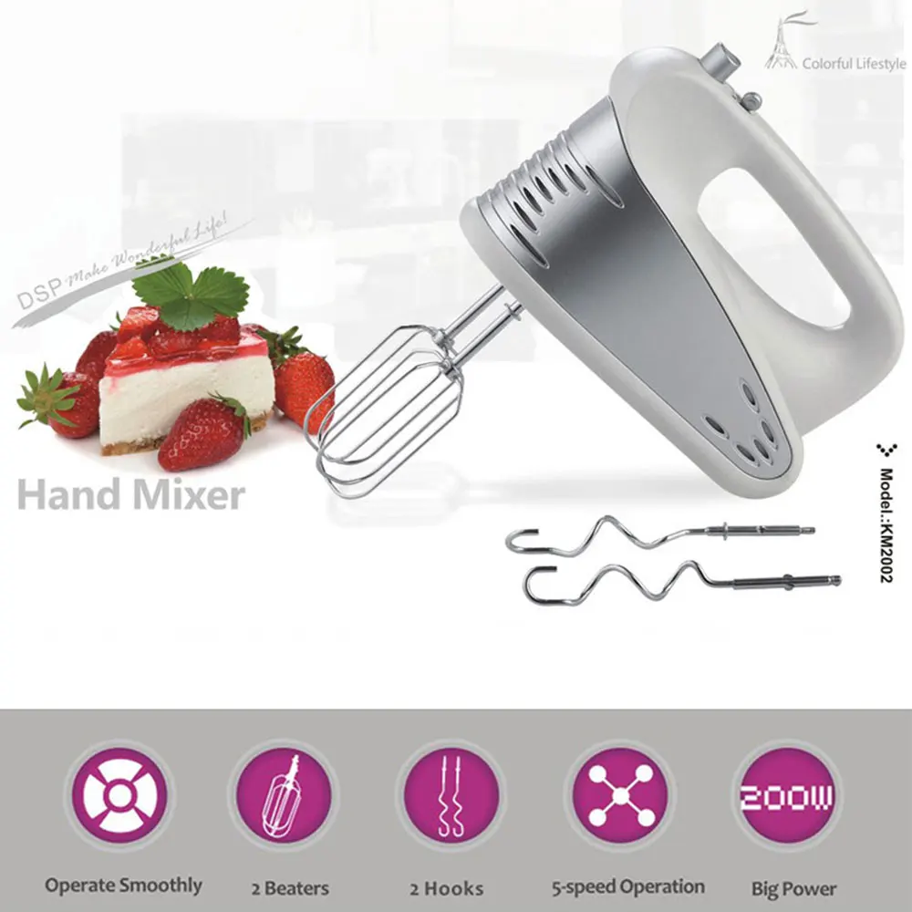 -С мотором 200 Вт и 5 различными скоростями, которые помогут вам взбивать, смешивать и разминать и турбо ручного миксера поможет вам более эффективно и быстро.