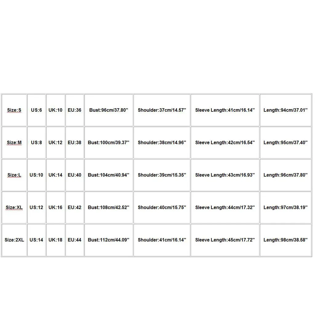 Размер США Великобритания ЕС Бюст Плечо Длина рукава Длина S 6 10 36 96 см/37,80'' 37 см/14,57'' 41 см/16,14'' 94 см/37,01'' М 8 12 38 100 см/39,37'' 38 см/14,96'' 42 см/16,54'' 95 см/37,40'' L 10 14 40 104 см/40,94'' 39 см/15,35'' 43 см/16,93'' 96 см/37,80'' XL 12 16 42 108 см/42,52'' 40 см/15,75'' 44 см/17,32'' 97 см/38,19'' 2XL 14 18 44 112 см/44,09'' 41 см/16,14'' 45 см/17,72'' 98 см/38,58''
