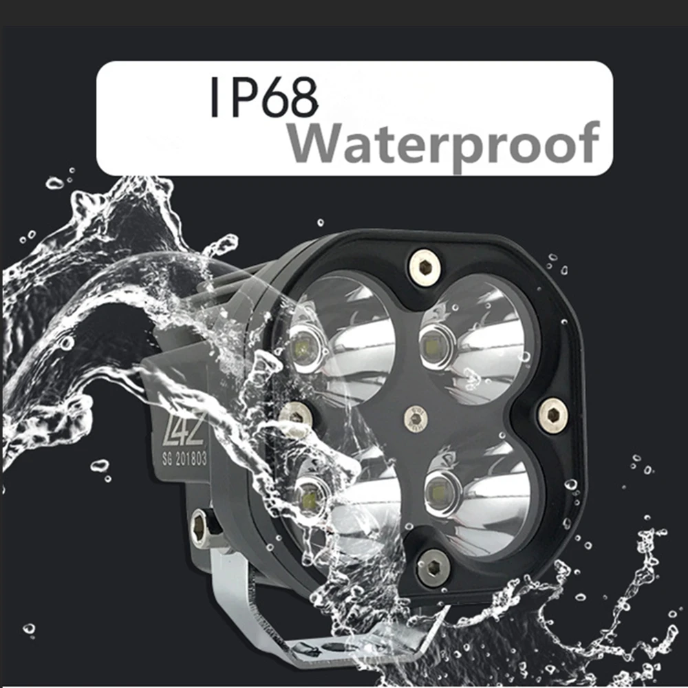 Технические характеристики (на светильник): Чипы: с использованием 4X CRE E XML2 LEDs Цветовая температура: 6500K Режим работы: точечные лампы Световой поток: 6500lm Напряжение: 9-36 В постоянного тока Мощность: 60 Вт Корпус: алюминиевый сплав с ЧПУ 6063 Передняя линза: Поликарбонат с твердым покрытием Материал оборудования и кронштейна: нержавеющая сталь Светодиодный Продолжительность жизни: 30000 часов IP68 (Водонепроницаемый погружения в воду до 2,5 м) Максимальный трос в одиночном светильник. Модель для вождения/комбинирования оснащена как широкой ручкой (42 °), так и точкой (6 °) оптика для того, чтобы предоставить вам гладкую смесь светильник для обоих ближнего радиуса действия приложений и расстояние около 75% светильник находится в 6 градусов конус и остальное в 42 градусов конус.