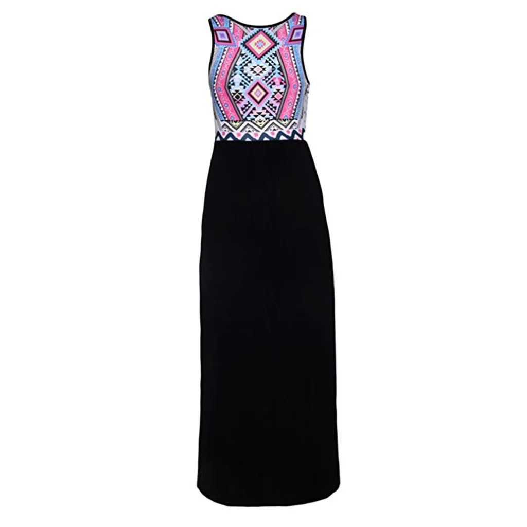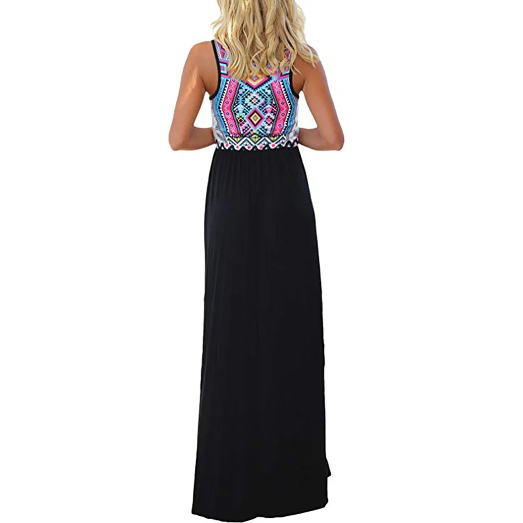 Женское пляжное платье без рукавов, повседневное длинное платье макси с принтом в стиле Aztec на лето