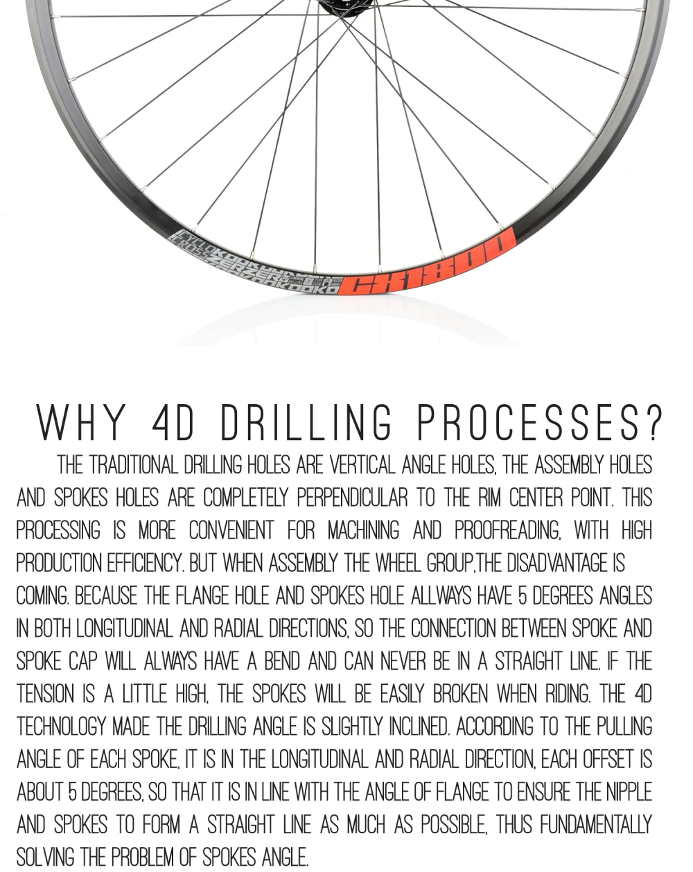 Традиционные отверстия для сверления-это вертикальные Угловые отверстия, которые представляют собой отверстия для секенции и Слюнявчики, полностью вертикальные до центральной точки обода. Эта обработка более удобна для обработки и коррекции, высокая эффективность производства. Но если по порядку группа колес, то выход из строя. Потому что фланге отверстие и вертел отверстие всегда есть 5 градусов в продольном и радиальных направлениях, таким образом, связь между языком и плюшевой крышкой всегда будет иметь изгиб и никогда не сможет стать прямой линией. Если напряжение Немного велико, шипы будут слегка повреждены при езде. В 4D технологии бурения угол немного наклонная. После вытягивания угла каждый шип, он находится в продольном и радиальном направлении, каждое смещение составляет более 5 градусов, таким образом, он находится в соответствии с углом бока, чтобы обеспечить сосков и шипов, чтобы как можно больше создать прямую линию, с тем чтобы в корне решить проблему угла спайки.