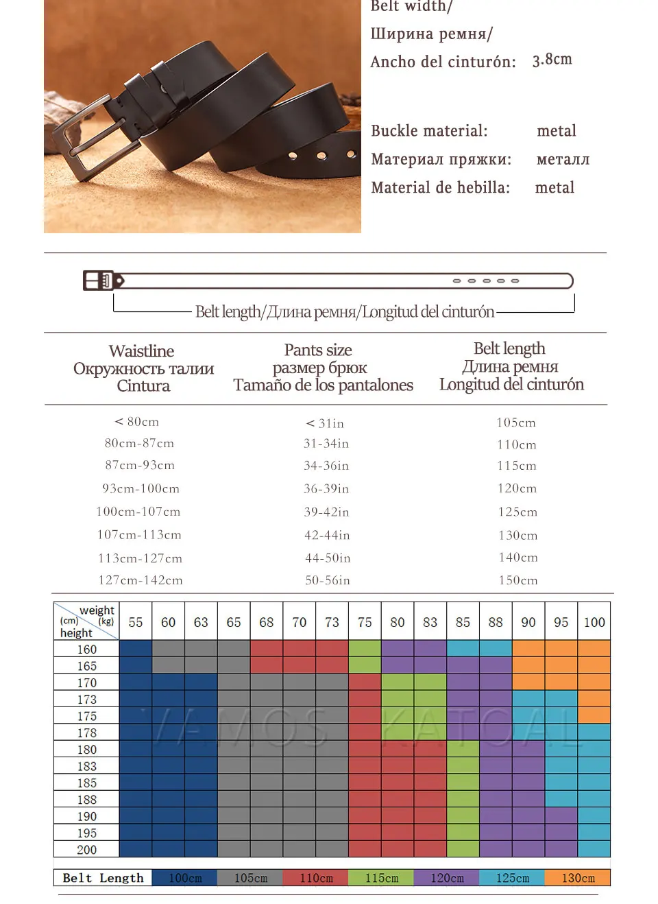 Название: мужские ремни VAMOS KATOAL из 100% натуральной кожи, высококачественный Повседневный ремень для джинсов, деловой ковбойский пояс из воловьей кожи