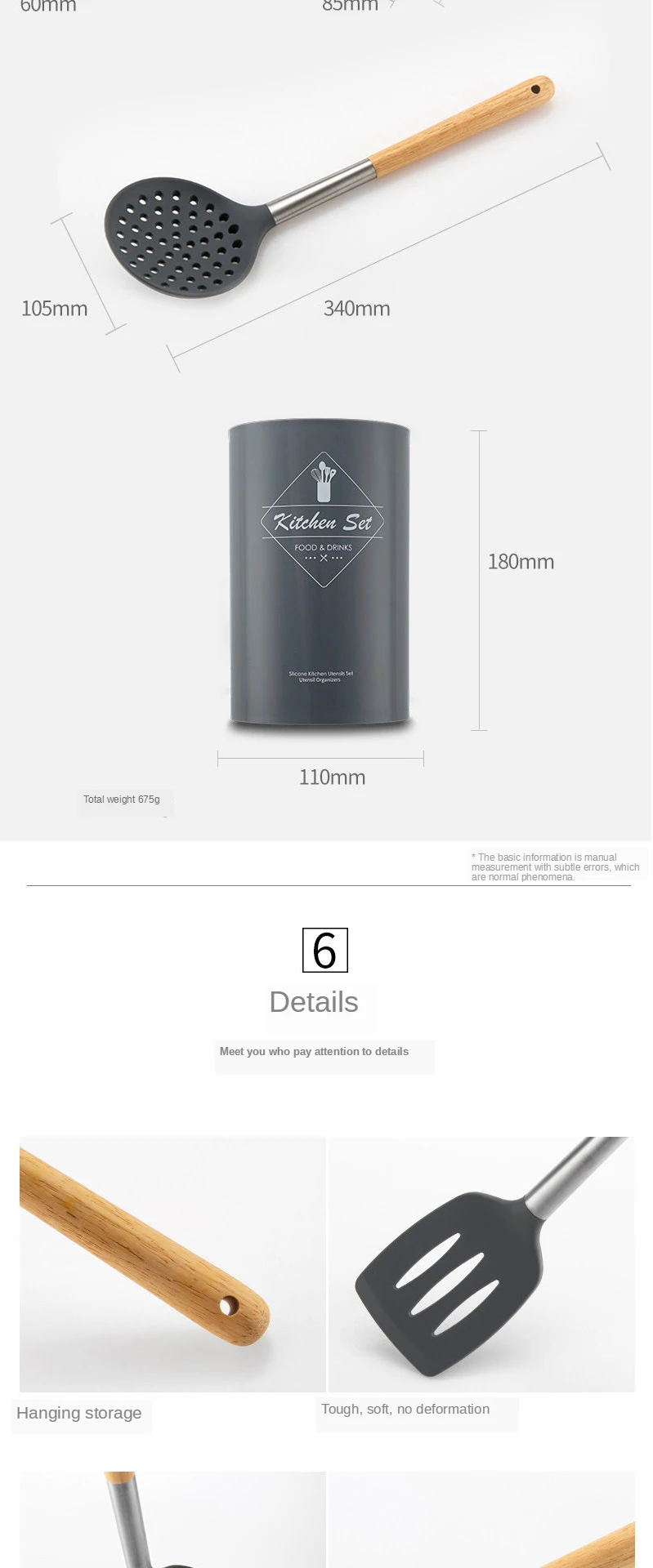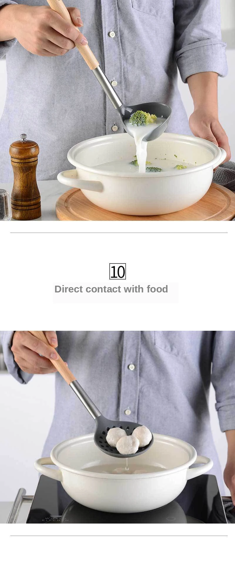 Особенности: Охрана окружающей среды, нетоксичный, термостойкий, с антипригарным покрытием, прочный, безопасный, легкоочищающийся, подходит для кухонная утварь продукты Подходит для: микроволновой печи, тостера, отпаривателя, можно варить и дезинфекции. Материал: силикон, натуральная акация