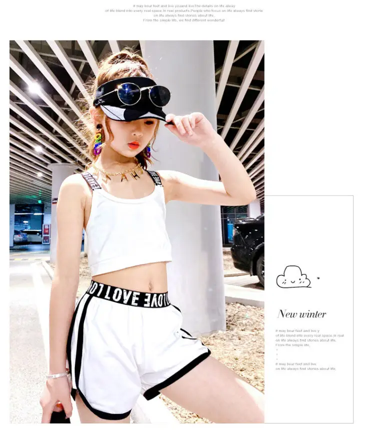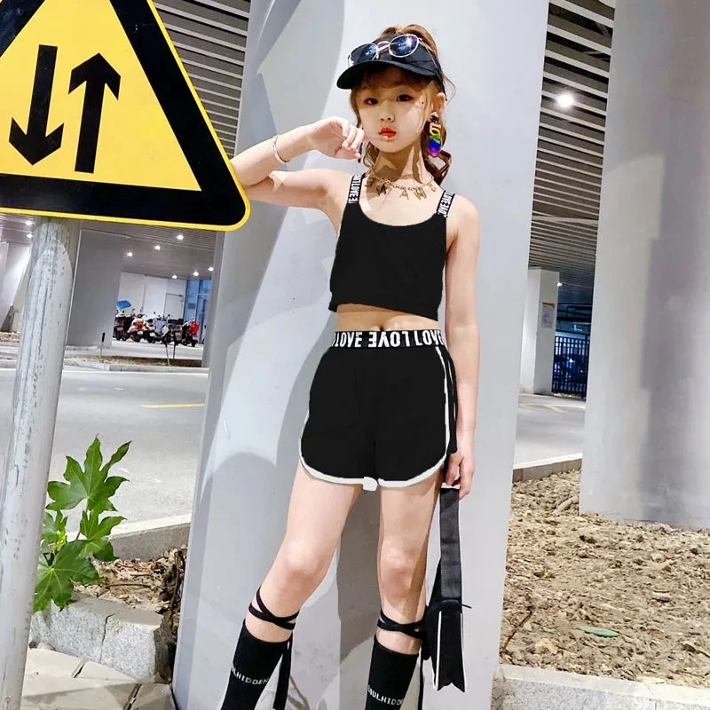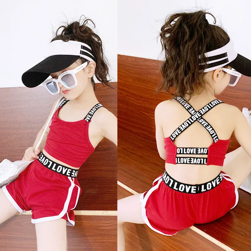 Летние комплекты из двух предметов для девочек, укороченный жилет + шорты, Детский костюм, Детская уличная одежда с буквенным принтом, с открытой спиной, с эластичным ремешком для детей 4, 8, 14 лет