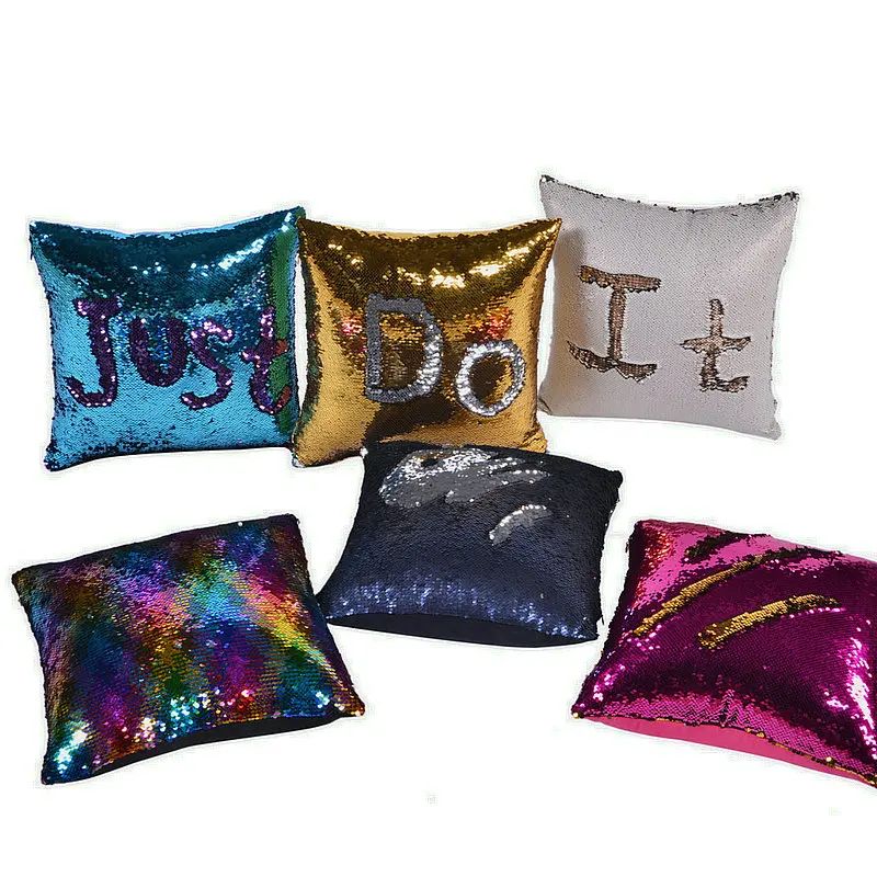 American Style Letter Cushion Cover Two-Color Magic Sequin Throw Pillow Cover Home Decoration Sofa Decor Decorative Pillowcase