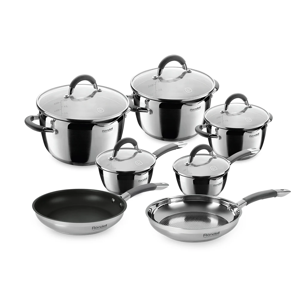 Все кастрюли, ковши и сковороды, изготовленные из нержавеющей стали, имеют тройное штампованное, а затем вплавленное дно, которое гарантирует равномерное прогревание в ней продуктов и идеальное приготовление блюд.