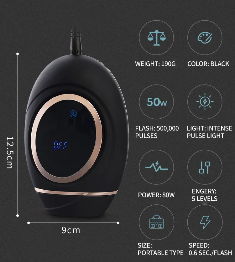 1. Быстрая 100 вспышек в минуту с 0,6 секунд на вспышку (на 1-ом уровне), более чем в два раза быстрее, чем у другого эпилятора IPL. 2. Применимое: 110 ~ 240 В рабочее напряжение, подходит для всех стран мира. 3. Автоматическое мигание с 500000 импульсами для более длительного времени использования. 4. Высокотехнологичный дизайн с сенсорным управлением 5. Прорезиненный Окрашенный корпус обеспечивает ощущение мягкого удержания. 6. ЖК-дисплей: предоставление четкой информации о состоянии продукта, оставшегося времени вспышки и уровня мощности 7. Безболезненный: пять регулируемых оптимальных уровней энергии в соответствии с терпимостью кожи. Обеспечивает мягкое лечение безболезненно и легко, не повреждая кожу 8. Перманентный: IPL работает внутри пор, уничтожает волосы папиллы, таким образом достигает постоянного удаления волос 9. Длительный срок службы: кварцевая лампа для удаления волос с более длительным сроком службы и долговечным использованием 10. Нет расходных материалов, нет среды, нет расходных материалов 11. Удобный: меньший размер для портативного и ручного удержания для удобного использования