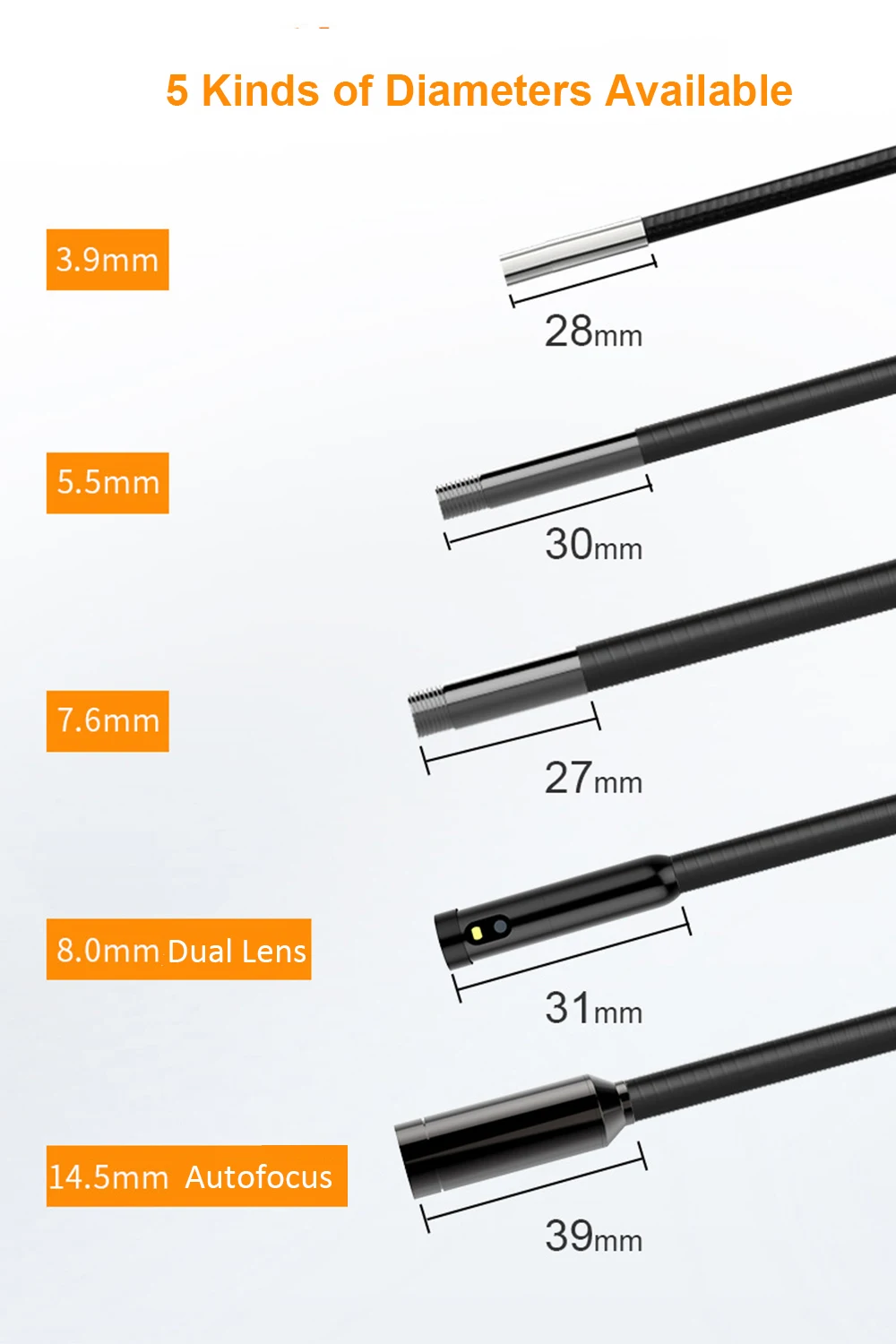 Диаметр: 7,6 мм/5,5 мм/3,9 мм/12,5 мм опционально