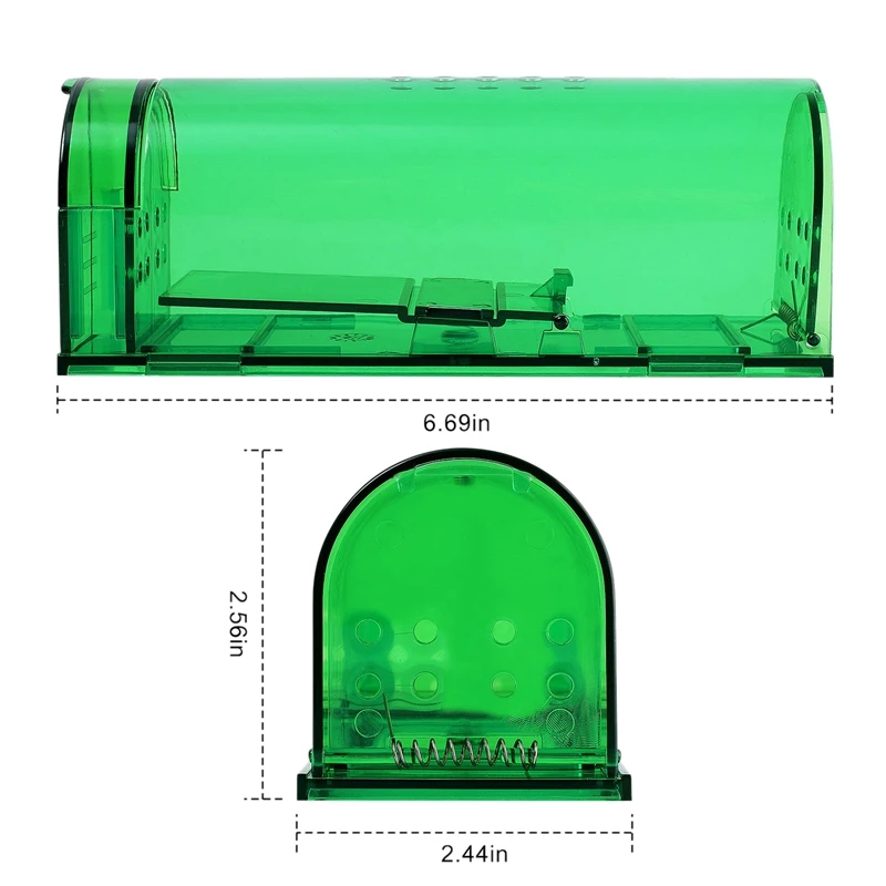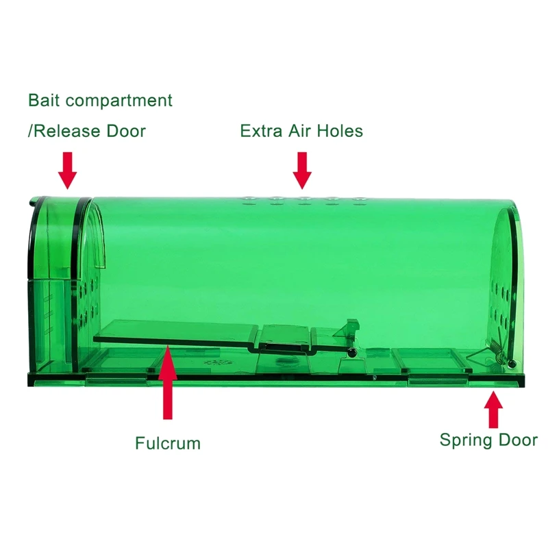 CLEVER & EFFECTIVE UPDATED DESIGN - Spring door will close to prevent escape; with a clear tunnel, check any trapped mouse without opening the plastic mouse trap; new updated model with added air holes; air holes have 2 uses: lure mouse with bait's smell and prevent suffocation