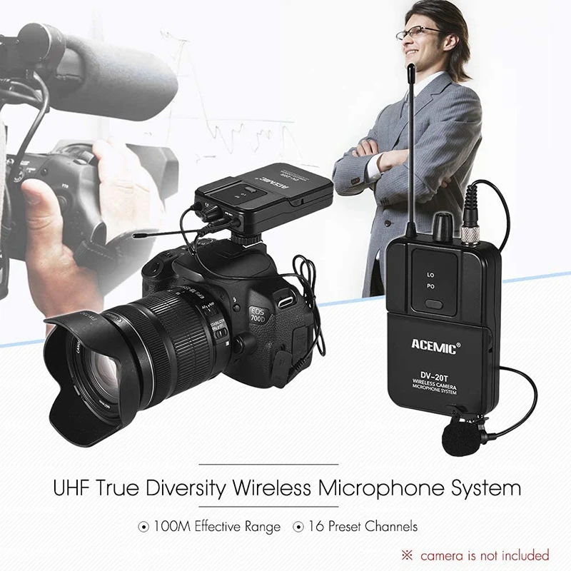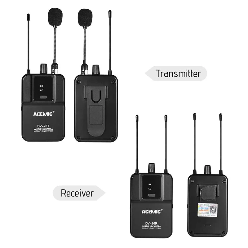 ACEMIC DV-20 UHF беспроводной микрофон с передатчиком и приемником совместим с DSLR камерой видеокамера интервью звукозапись