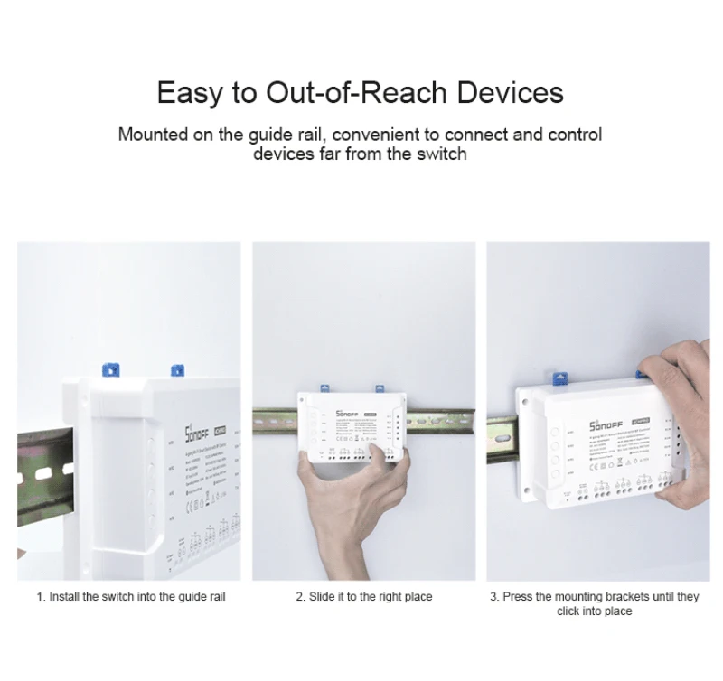 Умные переключатели SONOFF 4CHR3 is 4-gang DIY Wi-Fi вы можете включить режим самоблокировки, чтобы включить/выключить 4 бытовые устройства удаленно состояние устройства синхронно отображать запланированные/таймеры обратного отсчета делитесь контролем, поддерживает настройку питания статус работает с Amazon Echo, echo Dot, Amazon Tap работает с Google Home, Google Nest работает с IFTTT