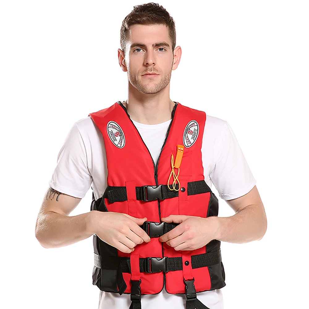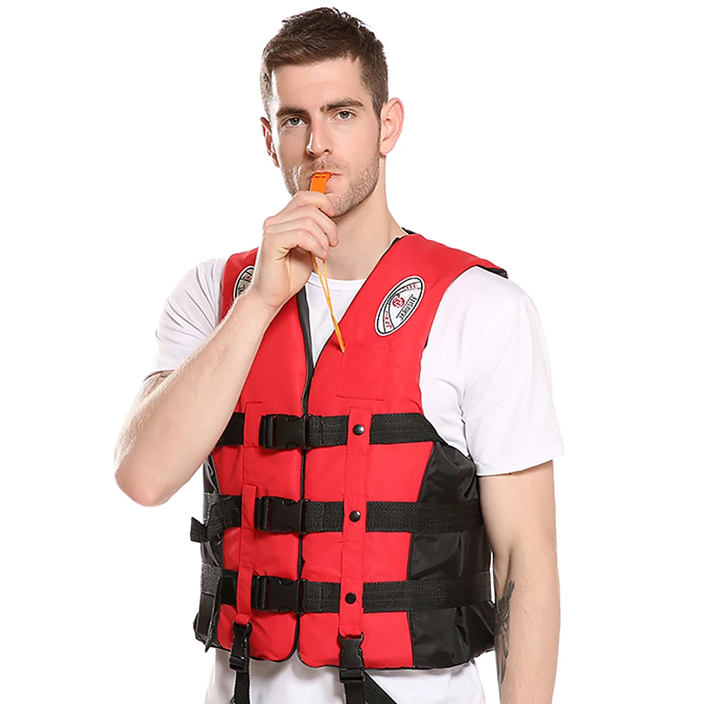 Три линии пряжки и регулируемые ремни ноги, чтобы соединить спасательный жилет с вами плотно.
