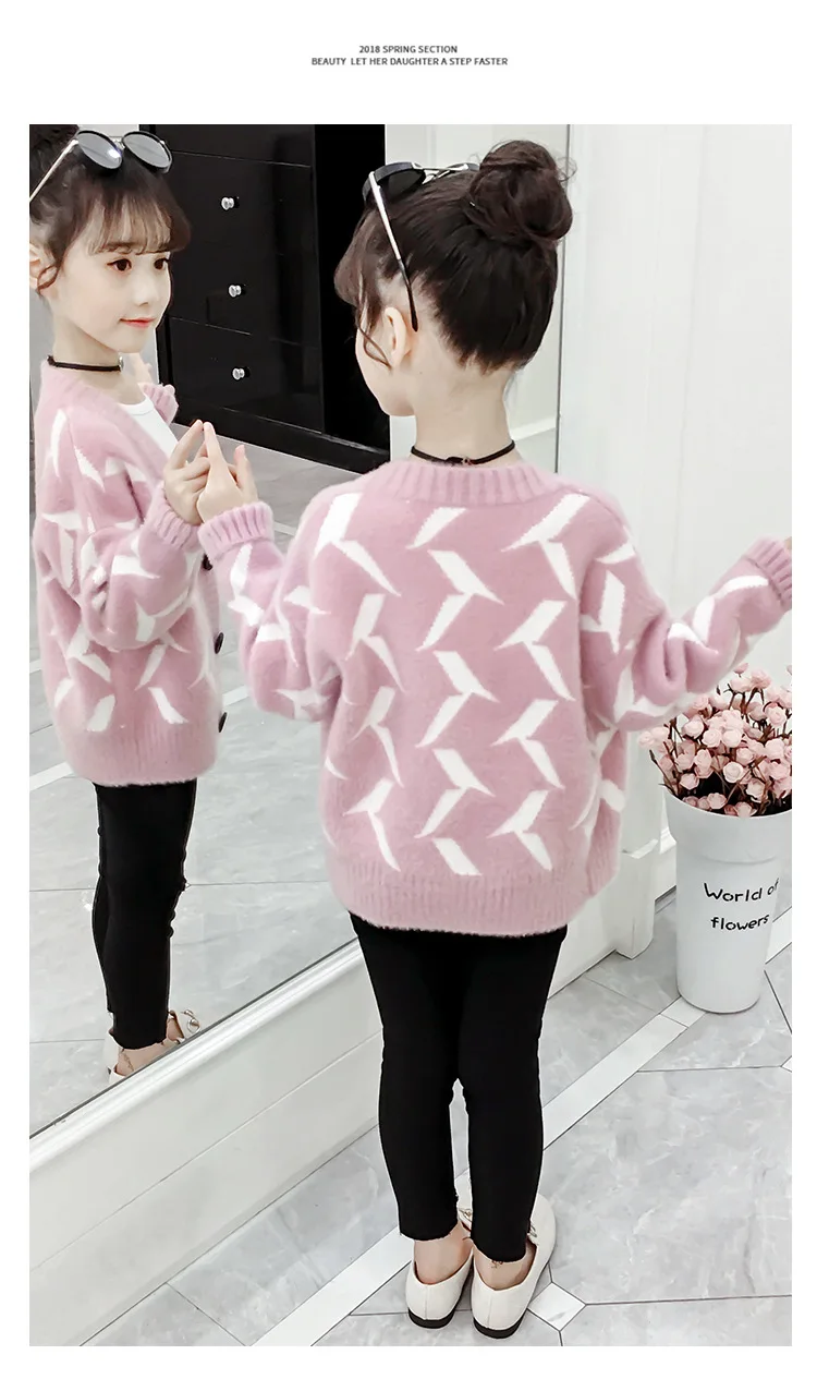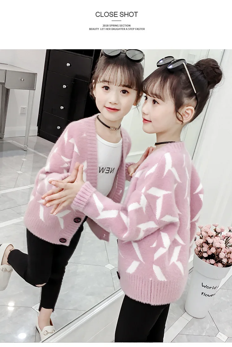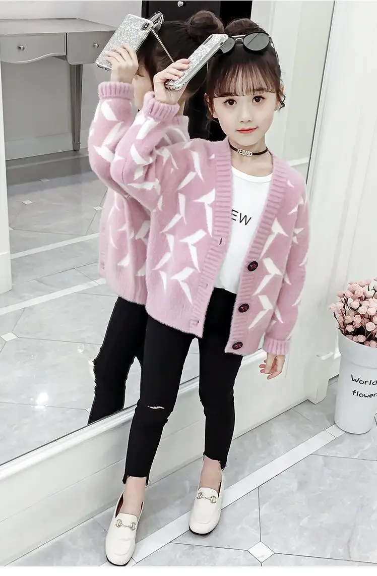 Свитер для девочек-подростков; Новинка 2020 года; Детский вязаный кардиган в Корейском стиле; Свитер с v-образным вырезом для подростковОдежда 12 13 14Y