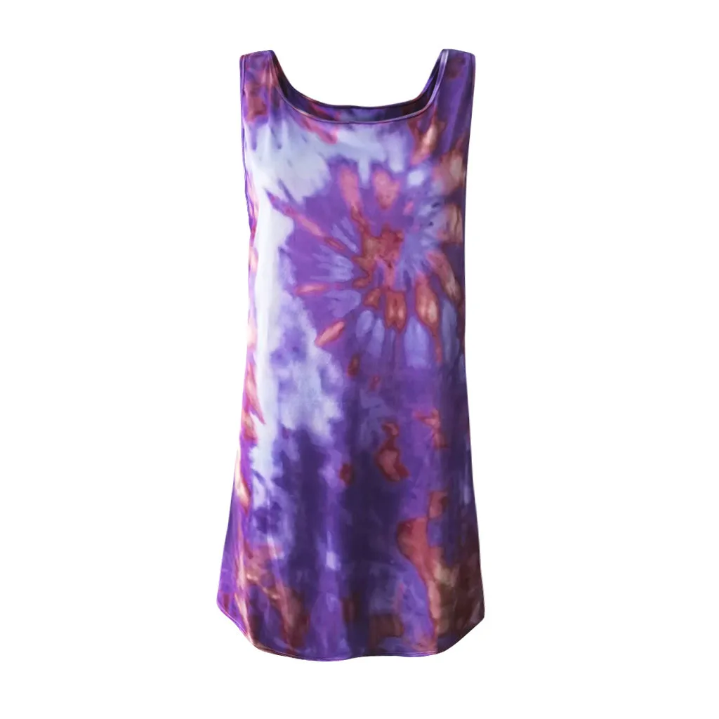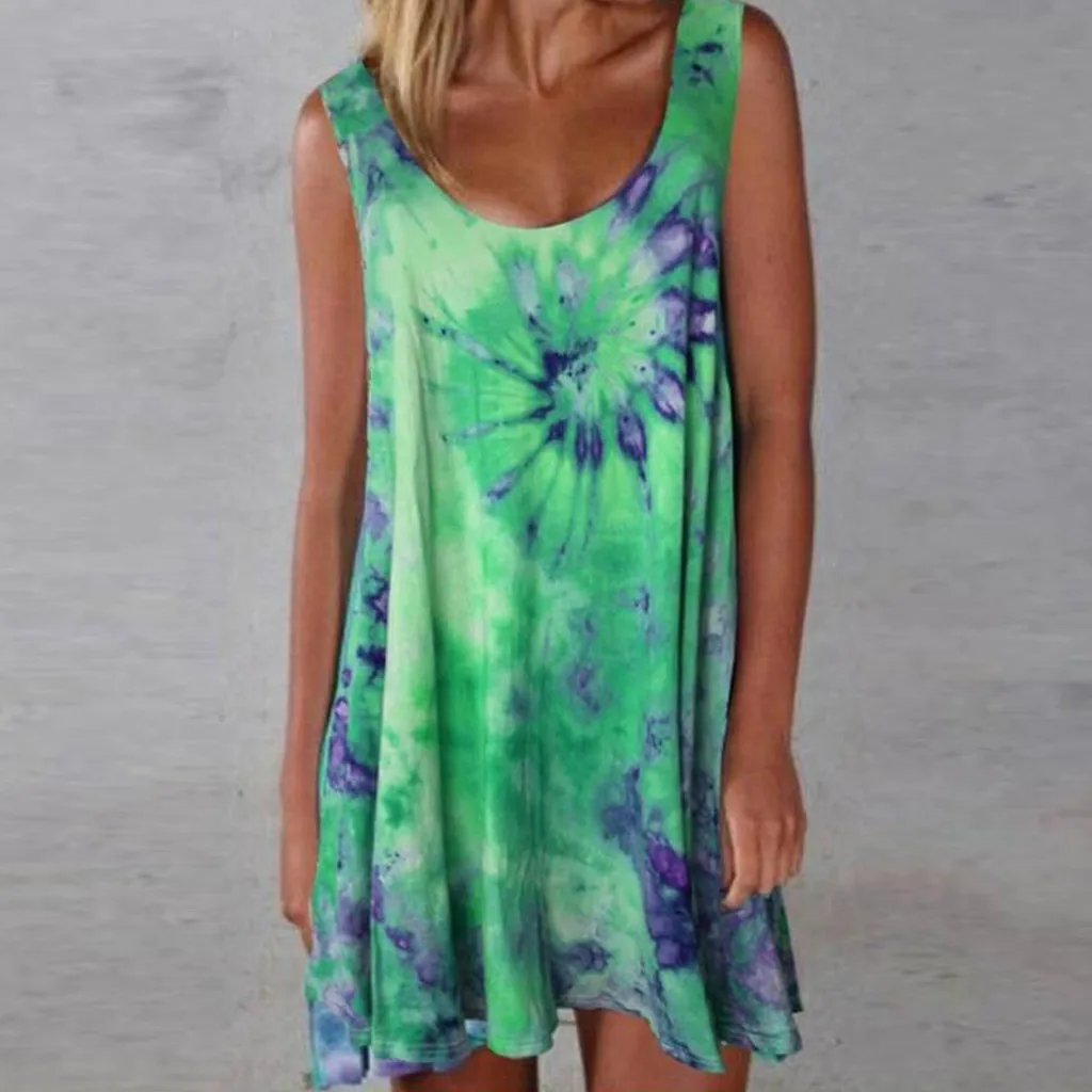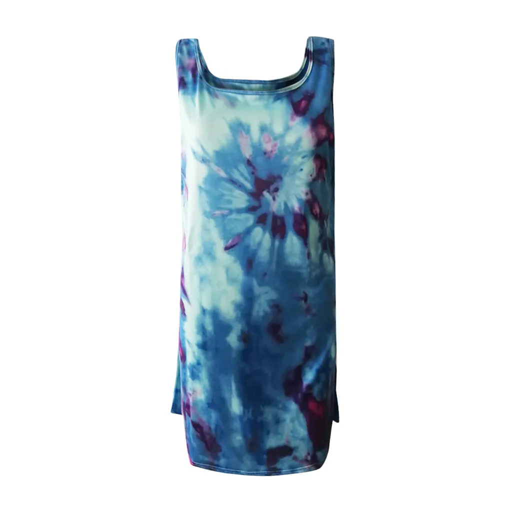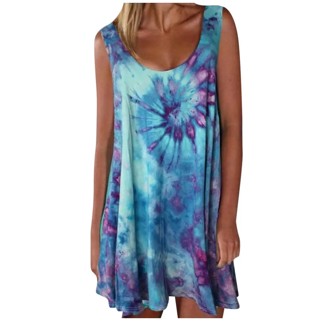 Модное женское повседневное разноцветное платье без рукавов с принтом в виде галстука-красителя и круглым вырезом, свободное платье