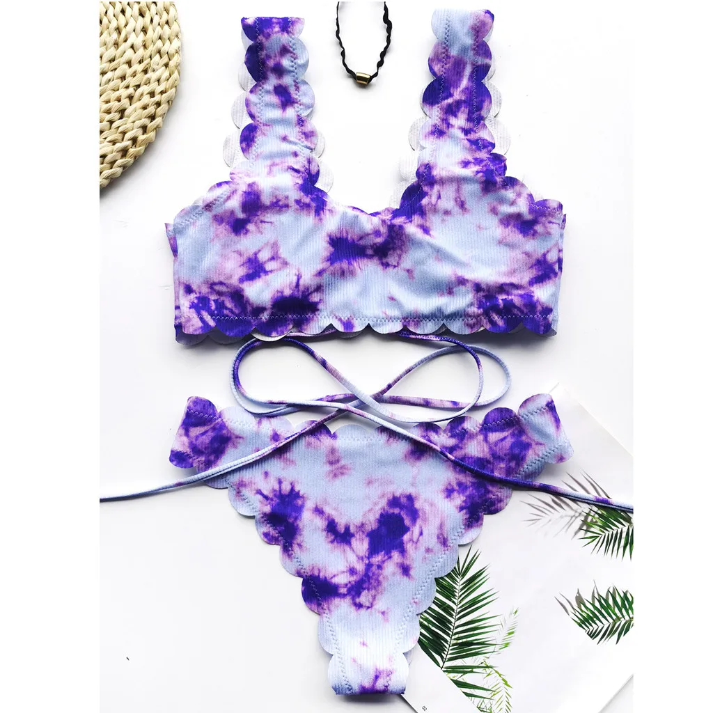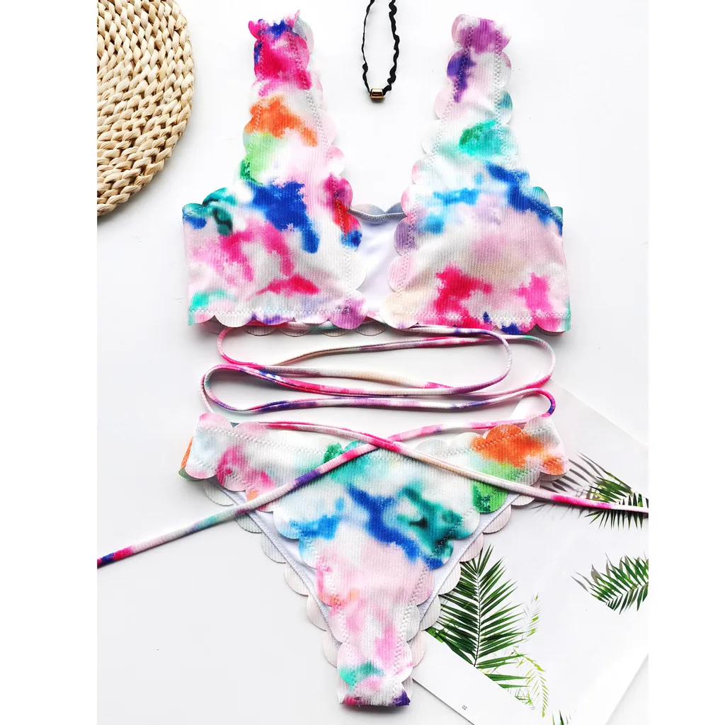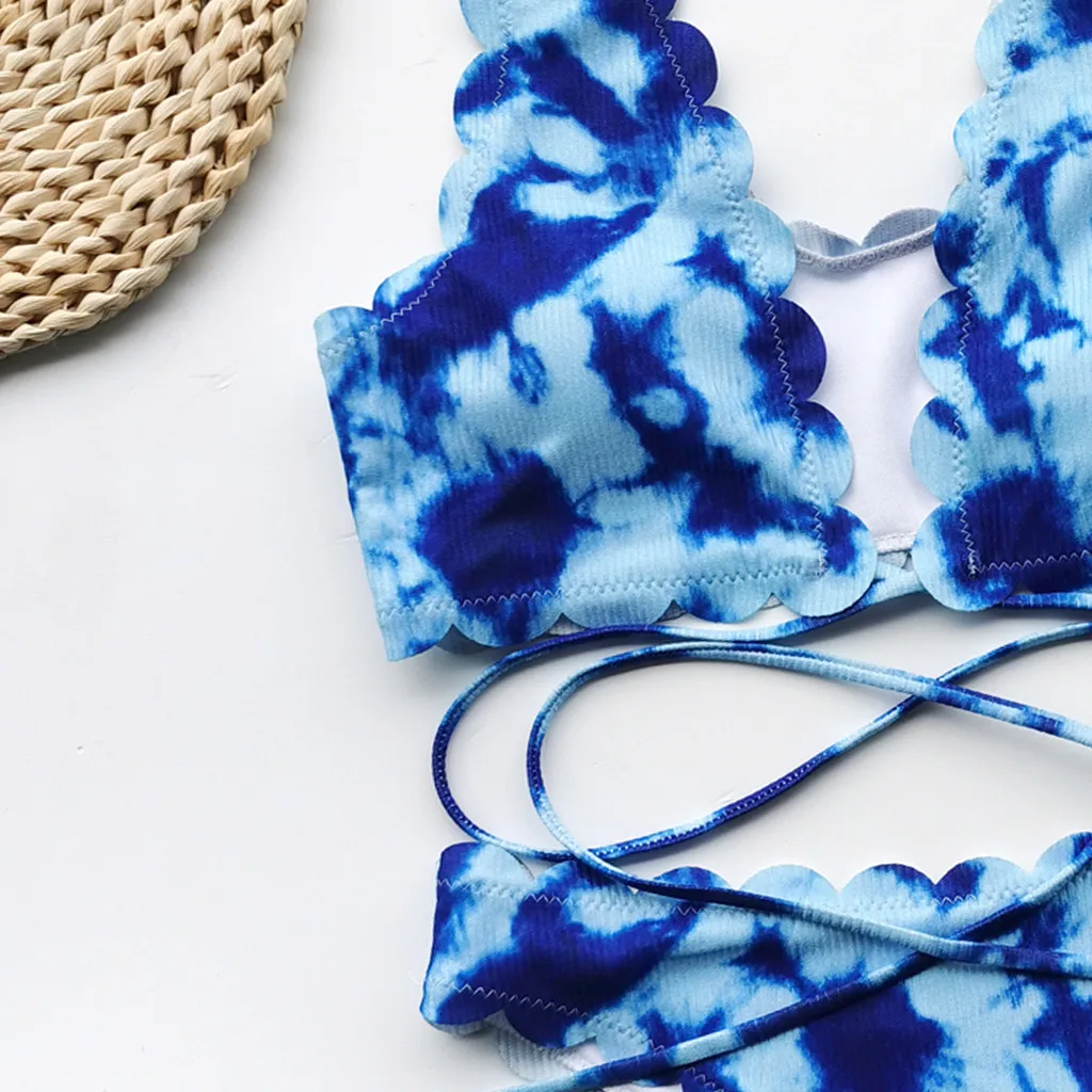 Женский бандажный бюстгальтер пуш-ап с принтом, бикини, купальник