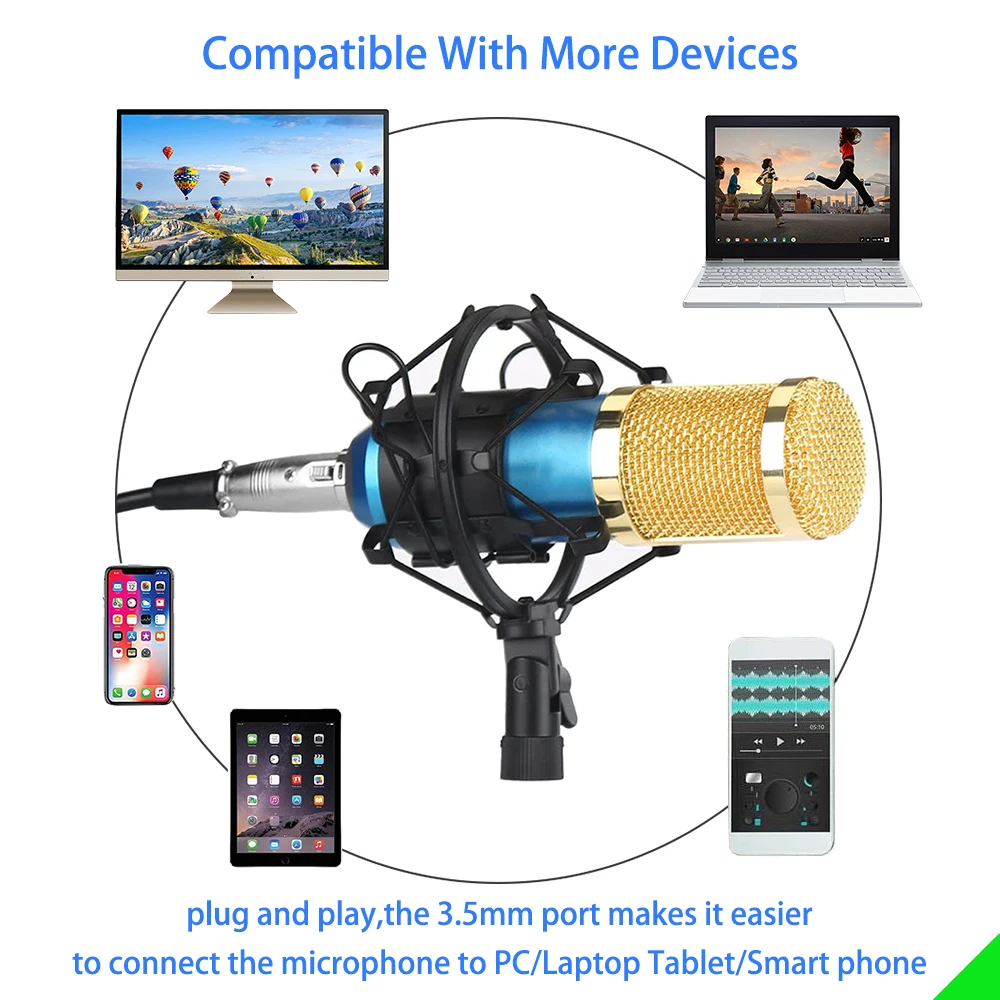 Особенности: (1) конденсаторный микрофон (2) чувствительность микрофона высока и звук чистый (3) для голосового чата YY, персональной записи, производства компьютерного караоке (4) индивидуальный внешний вид, разные цвета, профессиональная и модная комбинация (5) настройте специальный ветрозащитный чистый хлопок, чтобы эффективно исключить звук «POP» во время записи (6) позолоченная головка пленки для отличной частотной производительности, специально разработанная для персональной записи (7) высокочувствительный пикап, бесшовное соединение с компьютером, более широкое применение (8) профессиональный дизайн схемы обработки звука с низким уровнем шума, высоким уровнем звукового давления и большим динамическим диапазоном