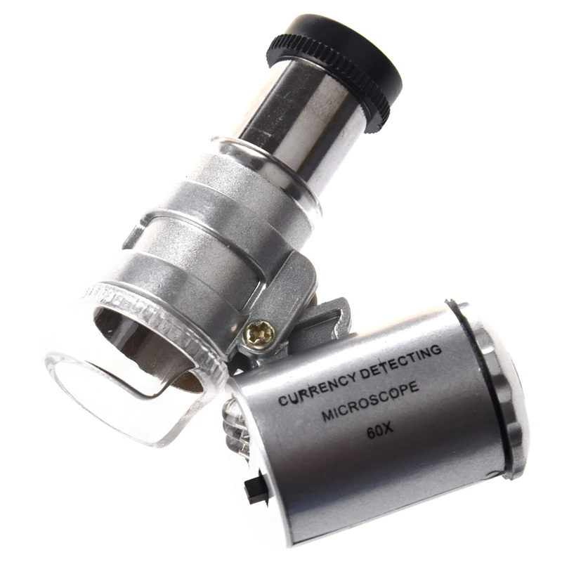 Посылка включает в себя: 1X мини 60x светодиодный карманный микроскоп