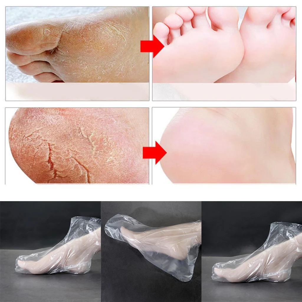 100% новый и высокое качество Изготовлен из высококачественных полимерных полиэтиленовых пленочных материалов, не нужно беспокоиться о утечке. Одноразовый Прозрачный чехол для ног достаточно широкий и длинный, чтобы носить его. Бесцветный и безвкусный, безвредный, удобный и мягкий. Тонкий и прозрачный, легкий и легко носить с собой. Подходит для дома, спа, салона красоты, терапии горячим воском, лечения парафина и т. д. Защитите ноги от инфекций бактерий. Вы можете позаботиться о своих ногах. Используйте увлажняющие средства для ухода за кожей ног, используйте Чехлы для ног, оберните ноги, продукт лучше.