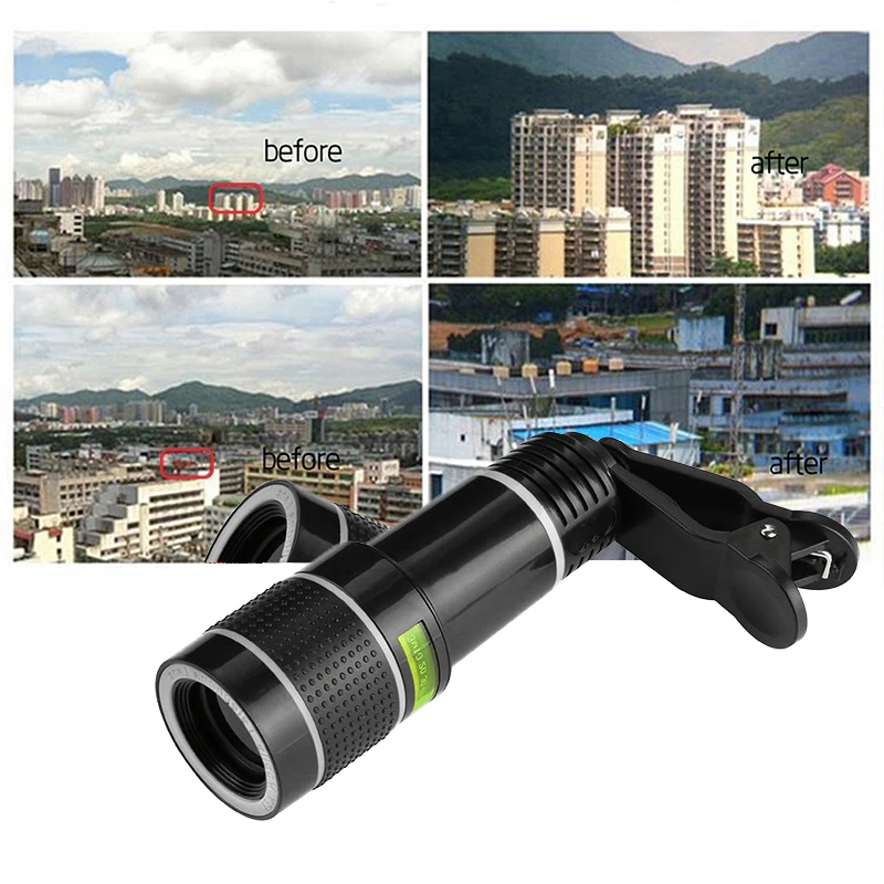 100% новый бренд и высокого качества телескоп имеет 20 раз зум, с помощью которой можно регулировать фокусное расстояние хорошо. Телескоп можно использовать как монокуляр. На 360 градусов Нет черного угла, запечатлейте более четкое изображение для вас. Подходит для большинства типов мобильных телефонов, включая флип-телефоны и бар-телефоны, заднюю камеру телефона, телескоп через зажим. Качество мобильного изображения может быть улучшено. Подходит для игры, концертов, туризма, наблюдения за животными, съемок с большим радиусом действия репортера и т. д. Частный детектив фотографирует экспертизу, геологоразведку, управление лесным хозяйством, планирование железнодорожных портов и т. Д. В комплект входит: телеобъектив, зажим, салфетка для очистки. Используйте уход, потому что линза точно отрегулирована, если она падает или ударяется, поле может не совпадать, и изображение будет отклоняться, а затем не падать в воду. Как только он попадет в воду, пожалуйста, почините его быстро. Тогда не смотрите на солнце абсолютно, ваши глаза могут иногда болеть и слепить.