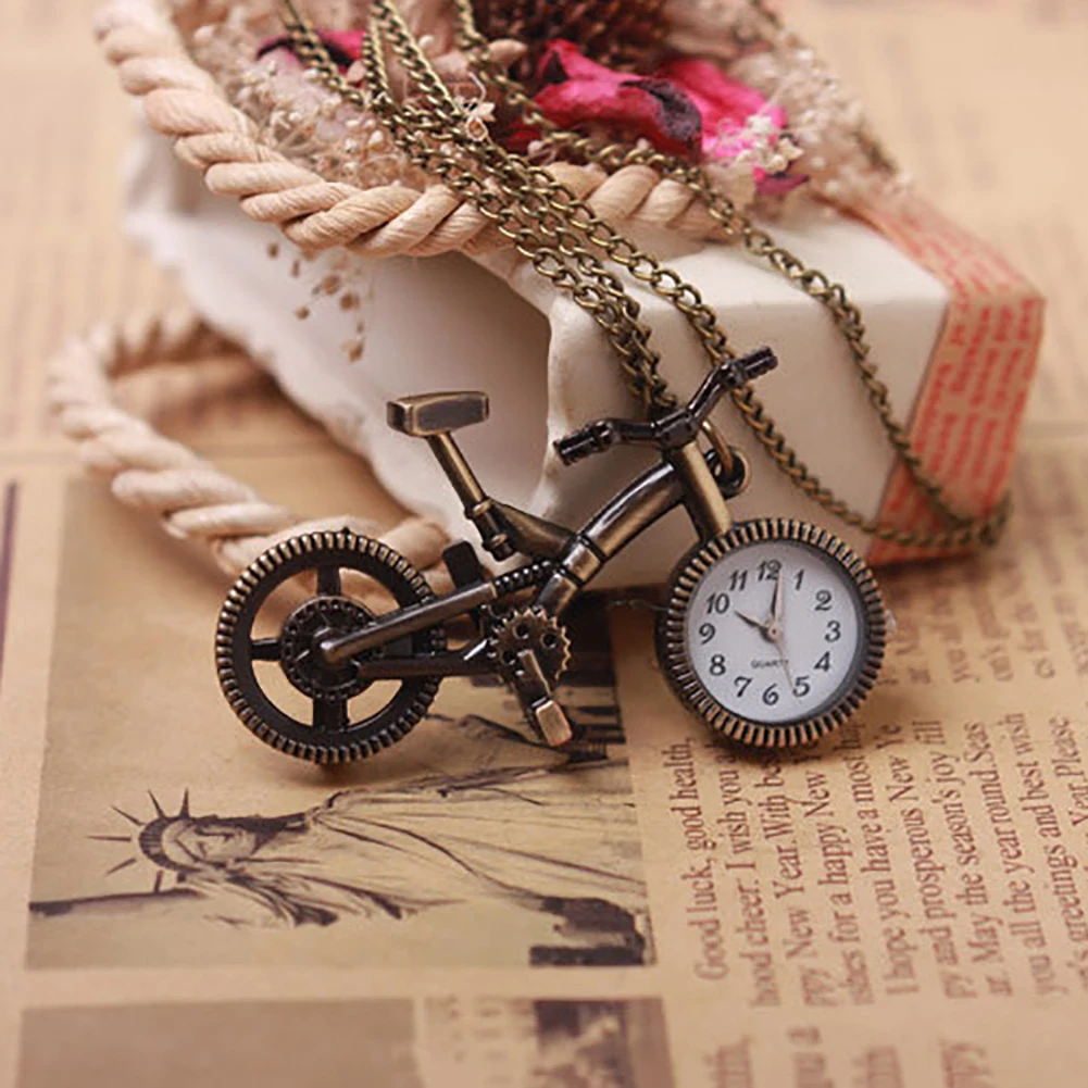 Винтаж бронзовый брелок с велосипедом часы кварцевые карманные часы кулон брелок в подарок
