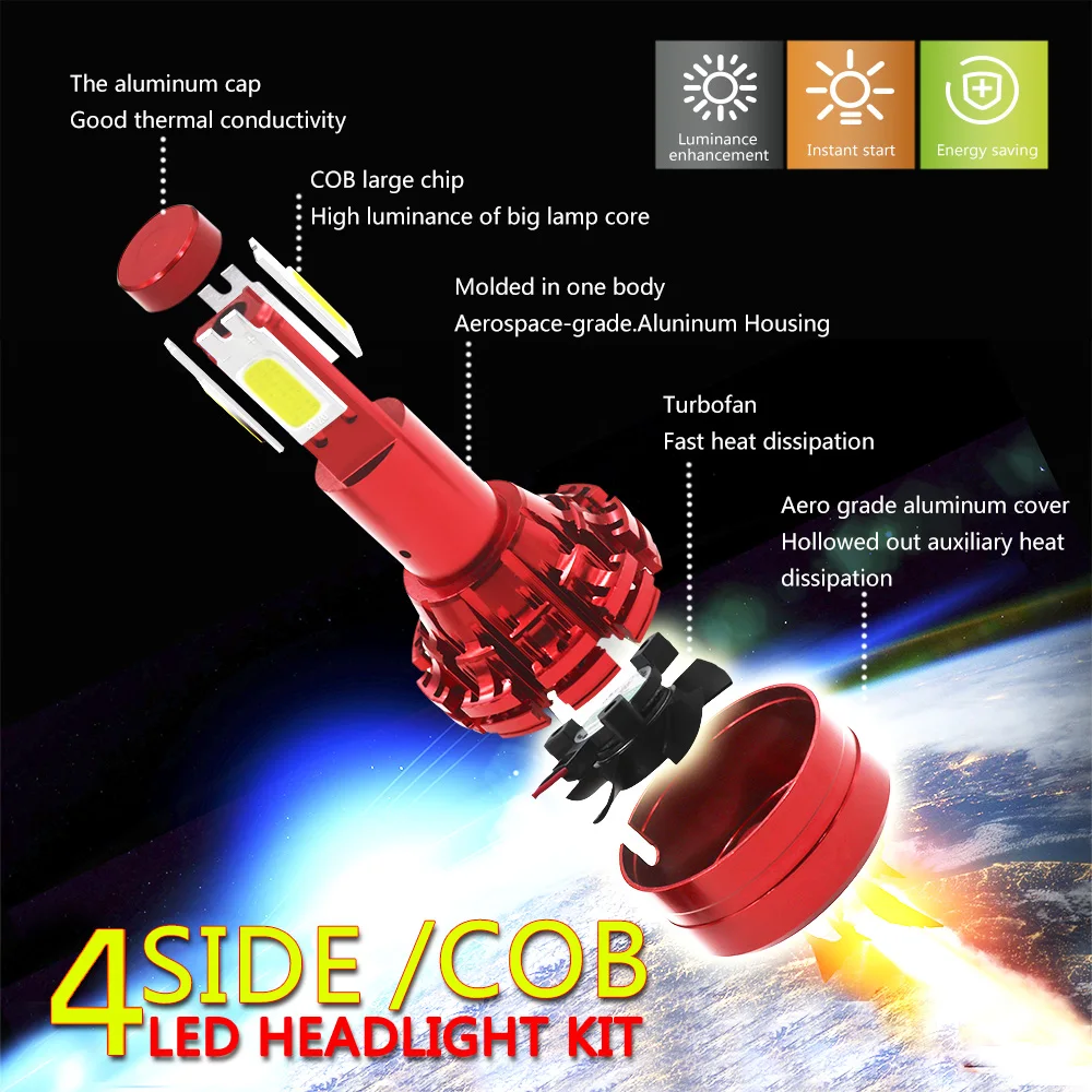 4 стороны люмен H7 H4 H1 H11 9006 HB4 H8 H9 H3 9005 HB3 H16 светодиодные лампочки для авто 80 вт фар автомобиля