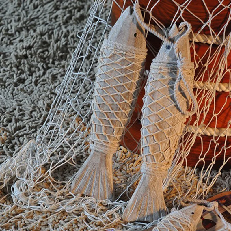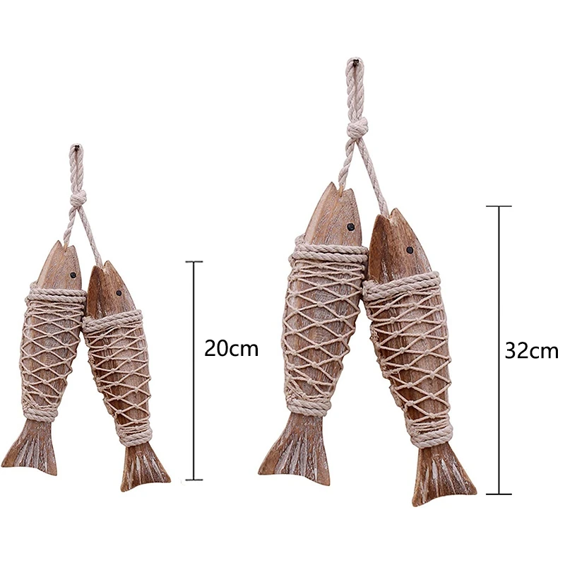 4 шт. винтажные резные деревянные рыбки с рыболовной сеткой, декор ручной работы, декорированные морским пейзажем, декор из дерева, проблемные настенные украшения Wo
