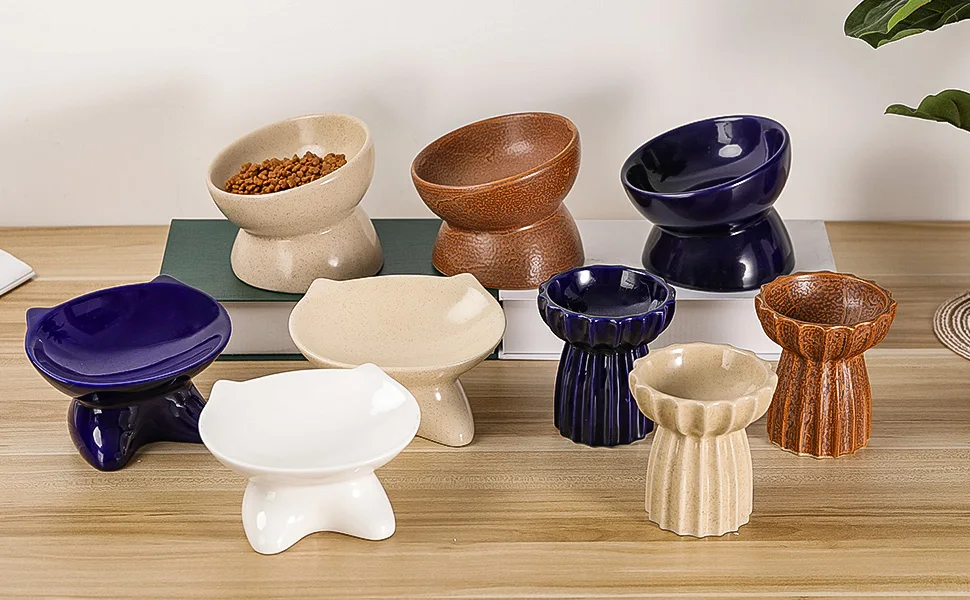 Керамическая маленькая/наклонная повышенная миска для кошек и собак, поднятая кошачья еда, миска для воды, блюдо, не проливается, миски для кормления домашних животных