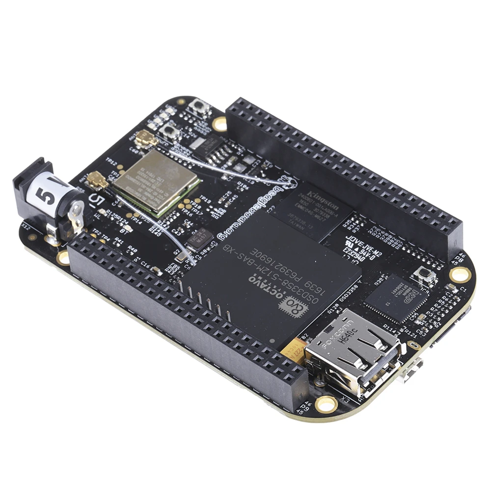 BeagleBone черный Беспроводной SBC, инструкция по эксплуатации BeagleBone Black Wireless от beagleboard.org-это макетная плата, основанная на процессоре AM335x Arm Cortex-A8, с дополнительными функциями беспроводной сети. Эта плата BeagleBone-это одноплатный компьютер (SBC), который поставляется с предварительно установленной ОС Debian Linux и может использоваться как автономный компьютер или встроен в систему. Дополнительные Беспроводные возможности поставляются с чипом WiLink Wi-Fi/Bluetooth. Вы также можете добавить до четырех накидок расширения на заголовки на беспроводной плате BeagleBone Black. BeagleBone черный против BeagleBone черный беспроводной Оригинальные беспроводные платы BeagleBone Black Rev C и BeagleBone Black очень похожи. Основным дополнением к беспроводной версии является подключение по Wi-Fi и Bluetooth, а не подключение по локальной сети Ethernet на традиционной плате. Поэтому Беспроводная связь BeagleBone Black идеально подходит, если вы хотите общаться с другими системами или устройствами на другом расстоянии. Что на борту? Процессор: AM3358BZCZ100 1 ГГц ARM Cortex-A8 Память: 4 Гб eMMC flash, 512 Мб DDR3, 4 КБ EEPROM Wi-Fi: WiLink 1835 802,11 b/g/n 2,4 ГГц Bluetooth: Bluetooth 4,1 с BLE Графика: SGX530 3D, 20M Polygons/S Хранение: microSD карты, 3,3 V MMC PMIC: TPS65217C USB: 1 хост USB A 2,0, 1 клиент miniUSB 2,0 Аудио: входной сигнал HDMI GPIO: 2x46-штырьковые наконечники Отладки: 20-контактный разъем CTI JTAG последовательный порт отладки Светодиодный индикатор: питание, Wi-Fi, Bluetooth, 4 управляемых пользователем Кнопки: сброс, загрузка, питание Мощность: миниusb или 5 В DC Jack Что входит в комплект? 1 x Беспроводная доска Beaglebone Black 1 х USB кабель (mini-USB для USB-A) В поисках вдохновения? Эта доска BeagleBone позволяет вам создавать прототипы и проектировать много различных вещей. Например, создайте игровую консоль, автоматизируйте свой дом или Настройте систему безопасности. Если вы застряли для идеи, BeagleBoard веб-сайта имеет множество поддержку общества ресурсов для того, чтобы зажечь ваше воображение: //beagleboard.org Поддерживаемые операционные системы Linux Android Встроенная Windows CE QNX Threadx Программное обеспечение для Совместимость Debian Android Ubuntu (убу́нту-операционная система) Cloud9 IDE/SATA Что еще вам нужно? Мощность питания: 5 В пост 1A HDMI/DVI-V монитор Кабель Micro HDMI-HDMI или адаптер micro HDMI-DVI-D Клавиатура и Мышь Usb-хаб (опционально)-плата имеет 1 usb-порт, поэтому вы можете добавить его для дополнительного подключения. Обратите внимание Для автономной работы потребуется монитор с входом HDMI, клавиатура и мышь. Комплект поставки USB-A к кабелю mini-B, руководство по запуску BeagleBoard.org