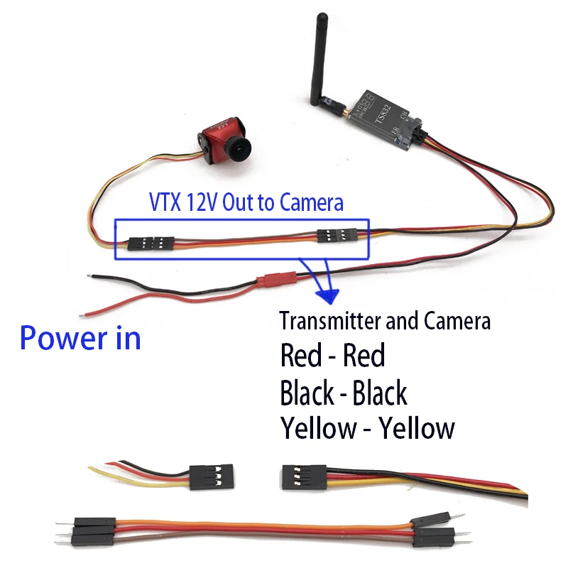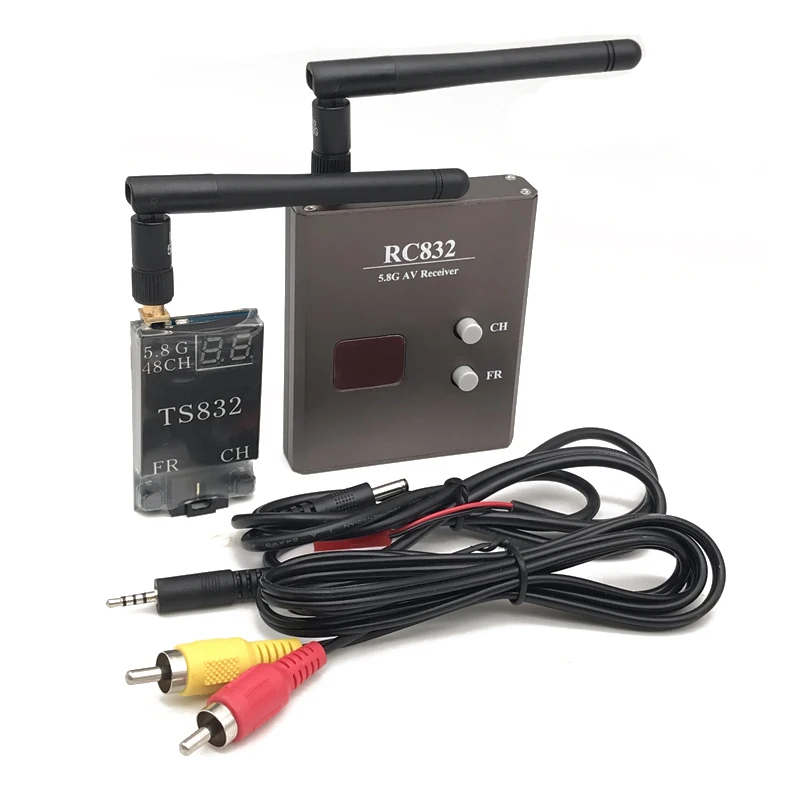 Передатчик TS832: Этот 5,8 GHz 48CH FPV передатчик имеет двойные кнопки для легкой смены CH и FR. 48 каналов: охватывают диапазоны A, b, E, F, r Формат видео: NTSC/PAL Выходное сопротивление: 50 Ом Диапазон частот передатчика: 5645-5945 МГц Расстояние передачи: > 3000 м (открытая площадь) Разъем антенны: разъем RP-SMA Рабочее напряжение: 7-16 В Ток питания: 220 мА Рабочая температура: -10 + 85 С Ширина полосы видео: 0-8,0 МГц Частота аудионосителя: 6,5 МГц Уровень видеовхода: 0,8, 1,0, 1,2 Vp-p Сопротивление видеовхода: 75 Ом Уровень аудиовхода: 0,5, 2,0 Vp-p Сопротивление аудиовхода: 10 кОм Приемник RC832: Питание: 12 В постоянного тока Сопротивление антенны: 50 ° Ø Видео сопротивление: 75 ° Ø Рабочая частота: 5,8 ГГц Доступный канал: 40CH Ток потребления: 200мА, макс Усиление антенны: 2 дБи Разъем антенны: RP-SMA Аудионоситель: 6,5 МГц Формат видео: NTSC/PAL
