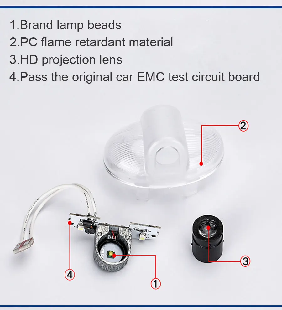 Этот продукт является беспроводным, специально разработанным для автомодификации fancier, и он не разрушит оригинальный внешний вид автомобиля, принесет больше удовольствия водителям. Ослепляющий светильник с логотипом и сигнальный светильник будут отображаться на земле, когда вы откроете дверь автомобиля, и он будет выключен, когда вы закроете дверь. Он может быть установлен как в левой, так и в правой двери. Дверной светильник из вежливости сделает ваш автомобиль более художественным, чем атмосфера. Легкая установка: настоящая подключи и работай! Просто нужно несколько минут, чтобы вынуть ваш старый светильник и вставить эту новую лампу. Без сверления, без проводки, без разборки, без повреждений вашего автомобиля. -Пожалуйста, свяжитесь со мной, если вы хотите увидеть логотип.