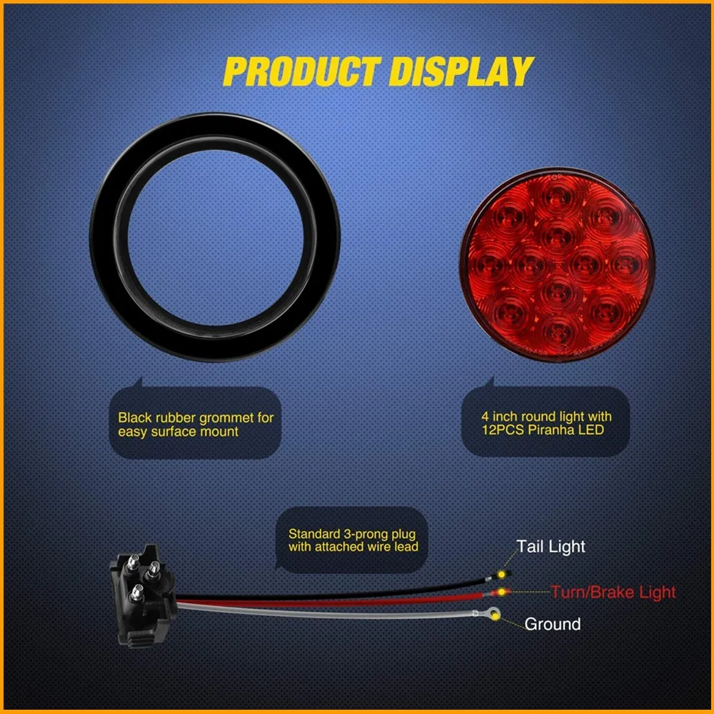 2 шт. 4 "круглый красный светодиодный задний фонарь для Jeep Truck Trailer RV w/поверхностное крепление Grommet вилки IP67 автомобильный стоп-сигнал поворотные задние фонари