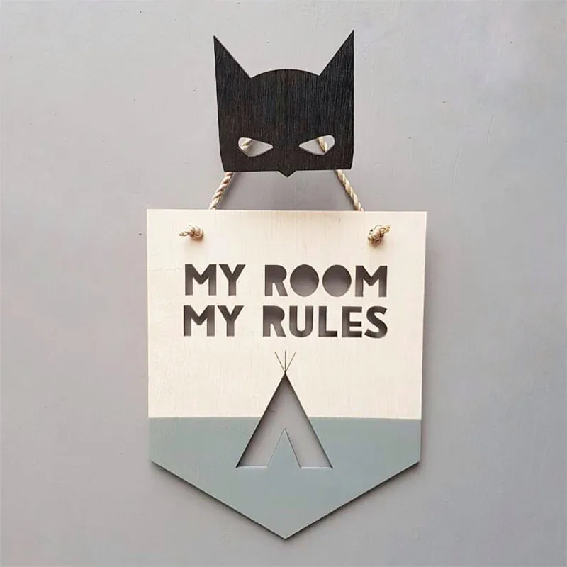 INS деревянный позитивный слоган баннер MY ROOM MY RULES деревянная фишка для украшения детской комнаты украшения Настенная подвесная гирлянда фото реквизит25