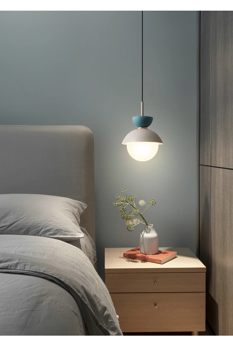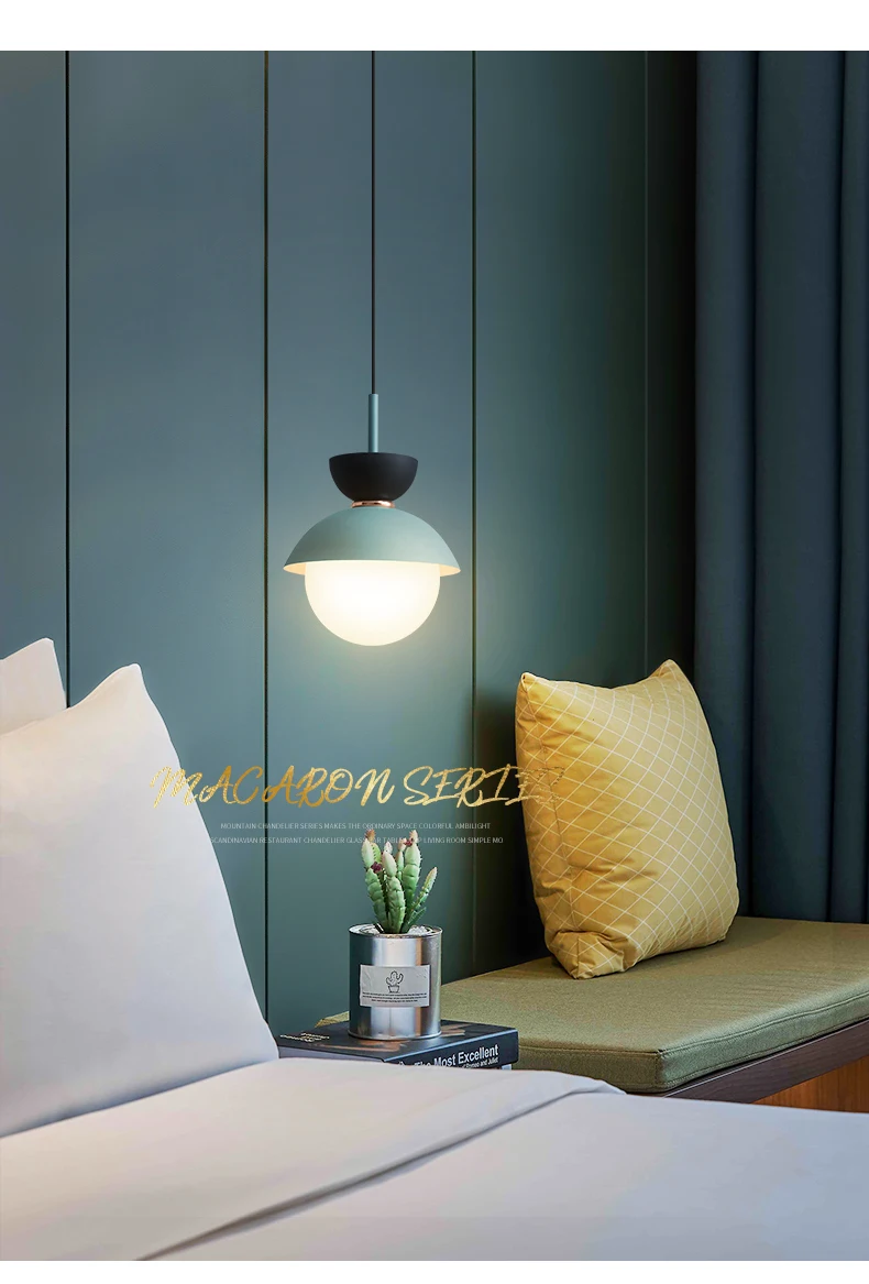 Светодиодный светильник с подвеской в скандинавском стиле Macaron, Подвесная лампа для столовой, гостиной, украшения, минималистическая Маленькая подвеска у кровати, лампа E14