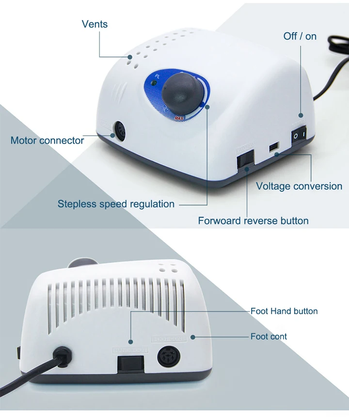Authent 65 Вт сильный 90 102L ручка ногтей сверла машина маникюр педикюр Электрический пилка бит ногтей художественное оборудование