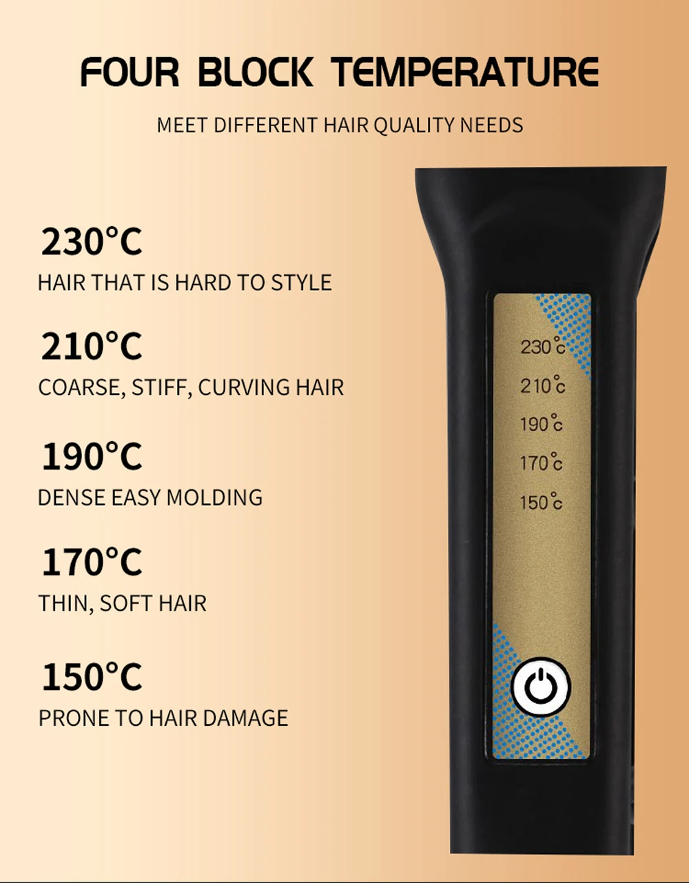 Особенности: 1. Волновая доска с 5 зубьями для создания красивых гофрированных волос для вас. 2. Нагревательные элементы PTC, Быстрое нагревание. 3. Турмалиновая нагревательная пластина с керамическим покрытием, равномерно нагревается, может уменьшить повреждение волос, пусть ваши волосы здоровые, гладкие и глянцевые. 4. Светодиодный индикатор работы, красный светильник появится при включении и исчезнет при выключении. 5. Пять температурных режимов, выберите лучшую температуру, которая вам нравится. Параметры: Материал теплопроводности: турмалиновая керамика Нагревательные элементы: PTC Напряжение: 100-240 В Мощность: 40 Вт Температура контроллера: Термостатический Длина шнура: 1,9 м Размеры: 30*4,3 см Цвет: черный Посылка Содержание: 1 х щипцы для завивки волос Руководство пользователя (1 шт.)