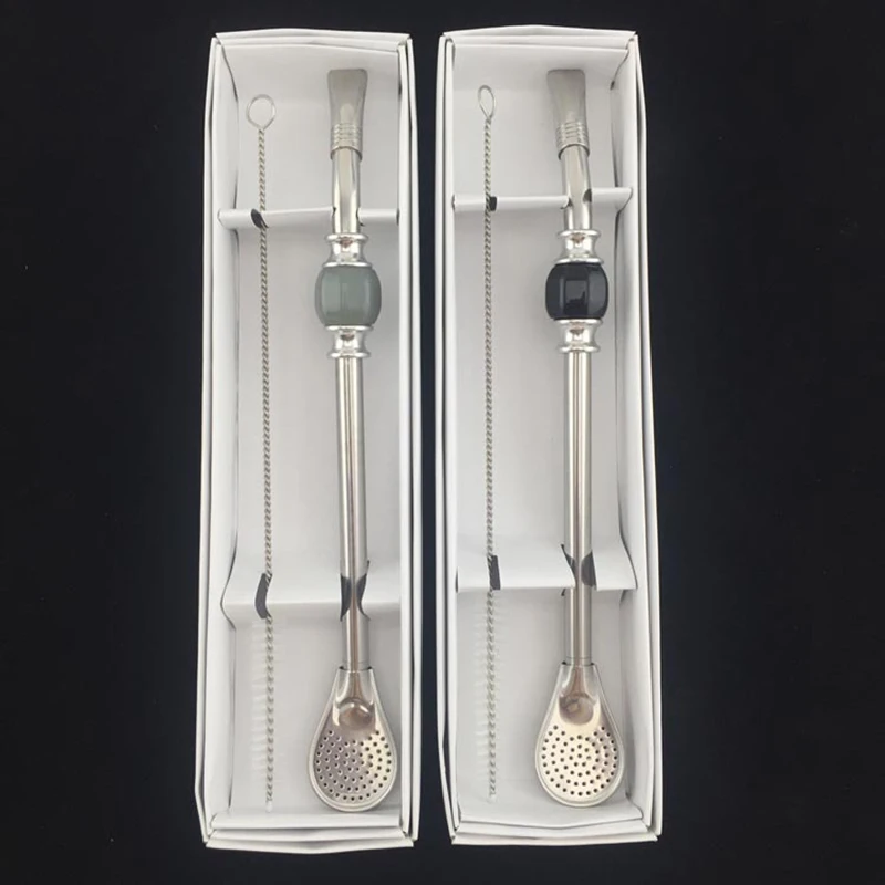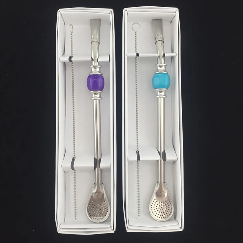 Моющаяся Питьевая соломенная ложка Чайный фильтр Yerba Mate с чистящей щеткой чайные соломинки Bombilla Gourd многоразовые инструменты для кофейного чая