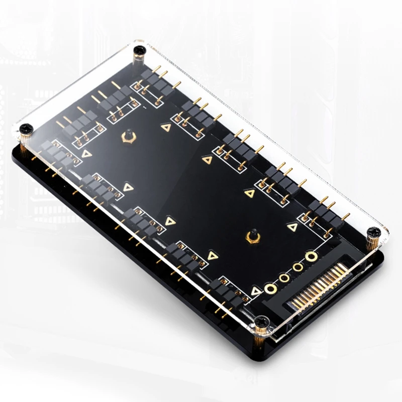 1. Роль этого концентратора заключается в том, чтобы расширить программируемый интерфейс RGB 3-pin 5 V на материнской плате и подключить больше полос или 5 V streamer вентиляторов для унифицированного затемнения материнской платы.