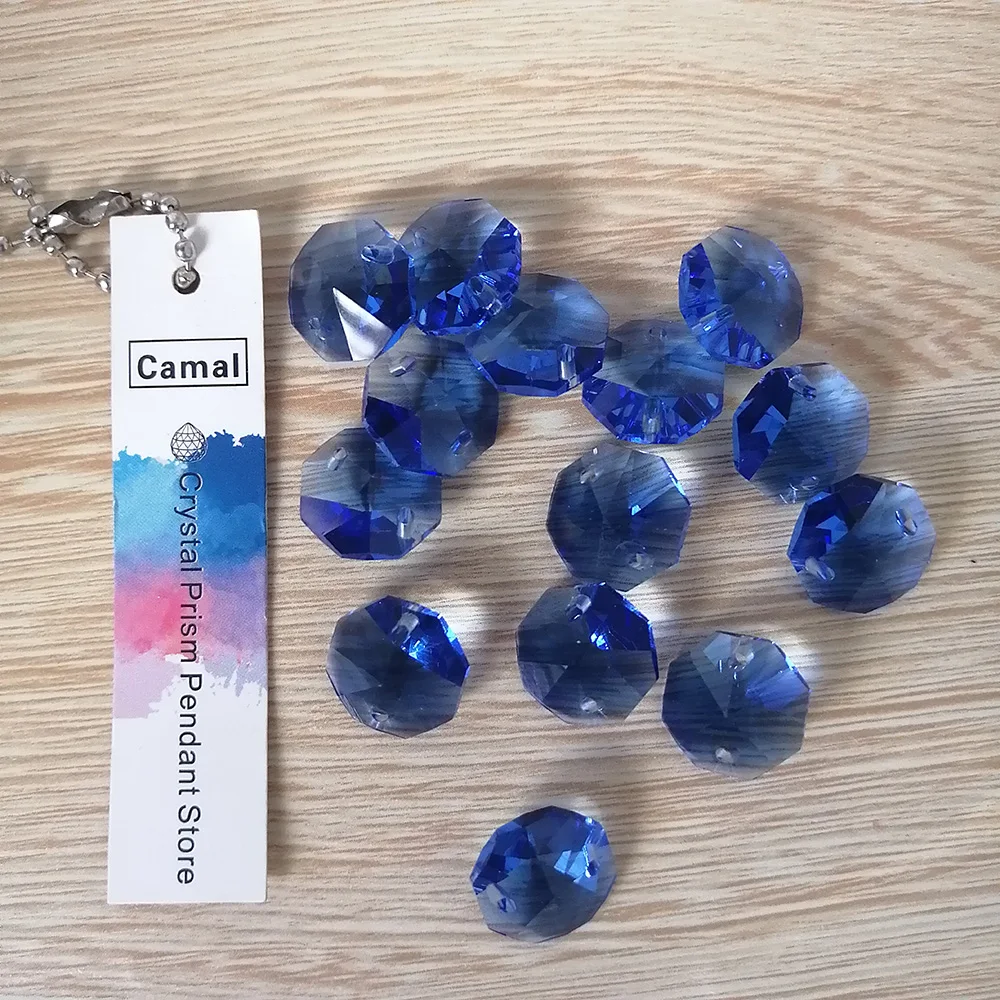 Camal 20 шт синий 14 мм Хрустальные Восьмиугольные бусины два отверстия призмы люстра части лампы аксессуары DIY свадебный центральный предмет