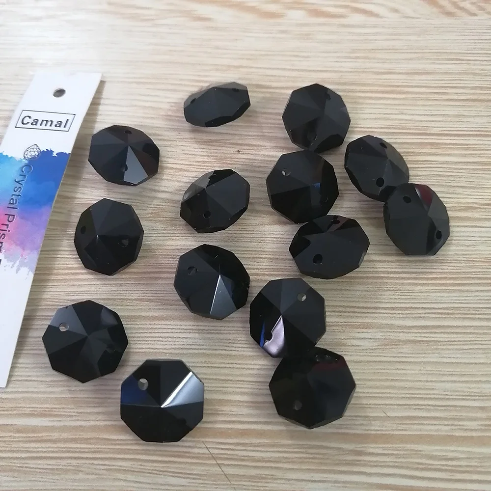 Camal 20 шт Черный 14 мм хрустальные Восьмиугольные бусины два отверстия призмы люстра части лампы аксессуары DIY свадебный центральный предмет