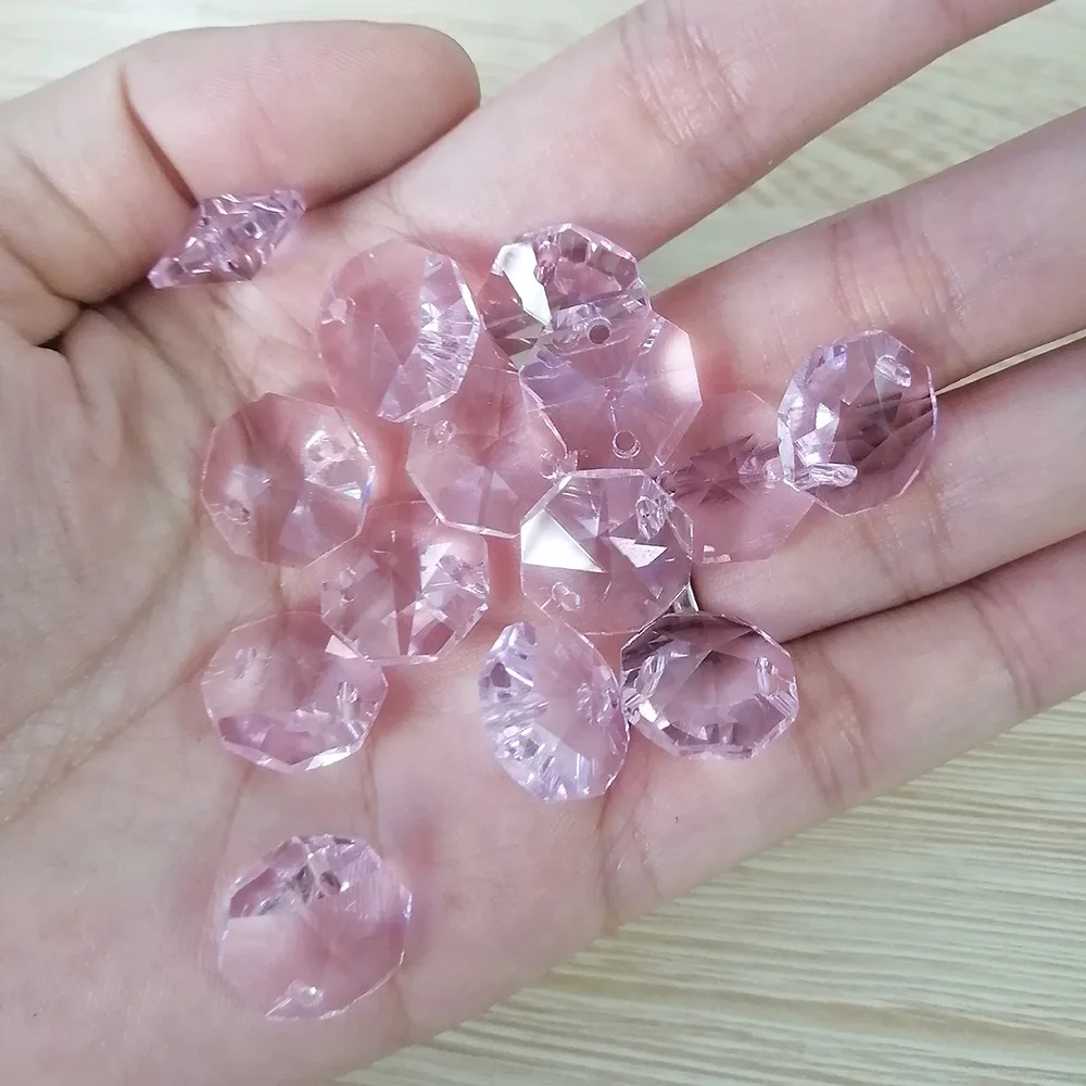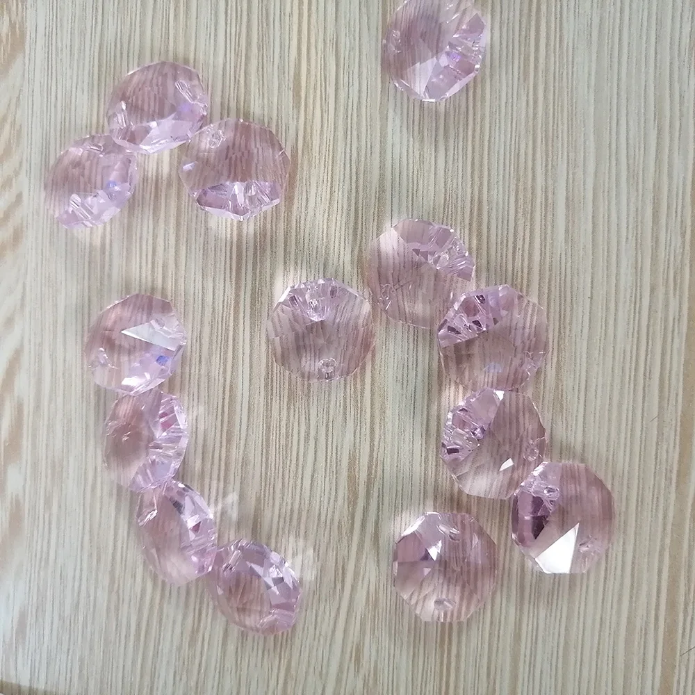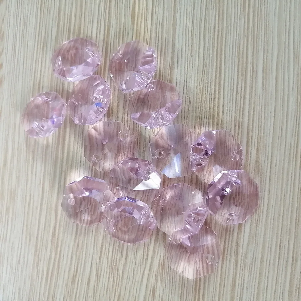 Camal 20 шт розовый 14 мм Хрустальные Восьмиугольные бусины два отверстия призмы люстра части лампы аксессуары DIY свадебный центральный предмет