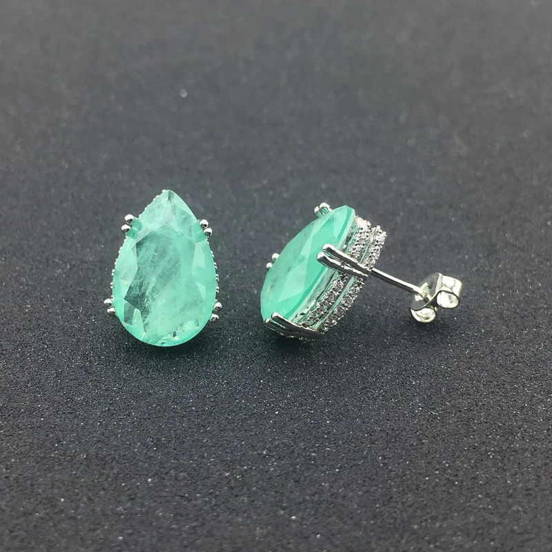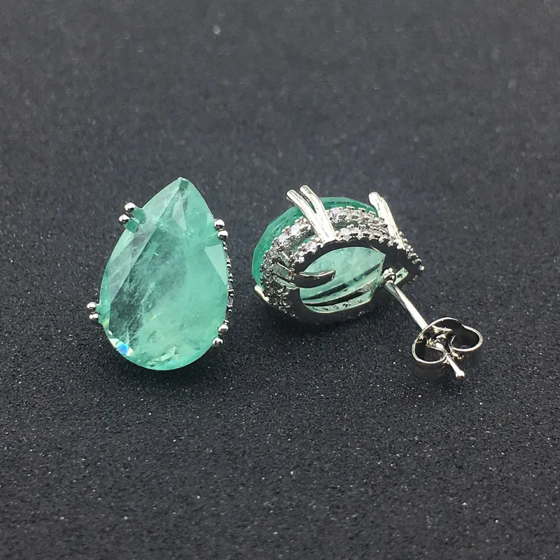 FFGems создан Изумруд Серьги синтетический драгоценный камень ювелирные изделия для женщин леди помолвка Свадебная вечеринка подарок с коробкой Главный драгоценный камень: синтетический драгоценный камень изумруд Размер камня: Pear10 * 15 мм Вес: 3,6 г