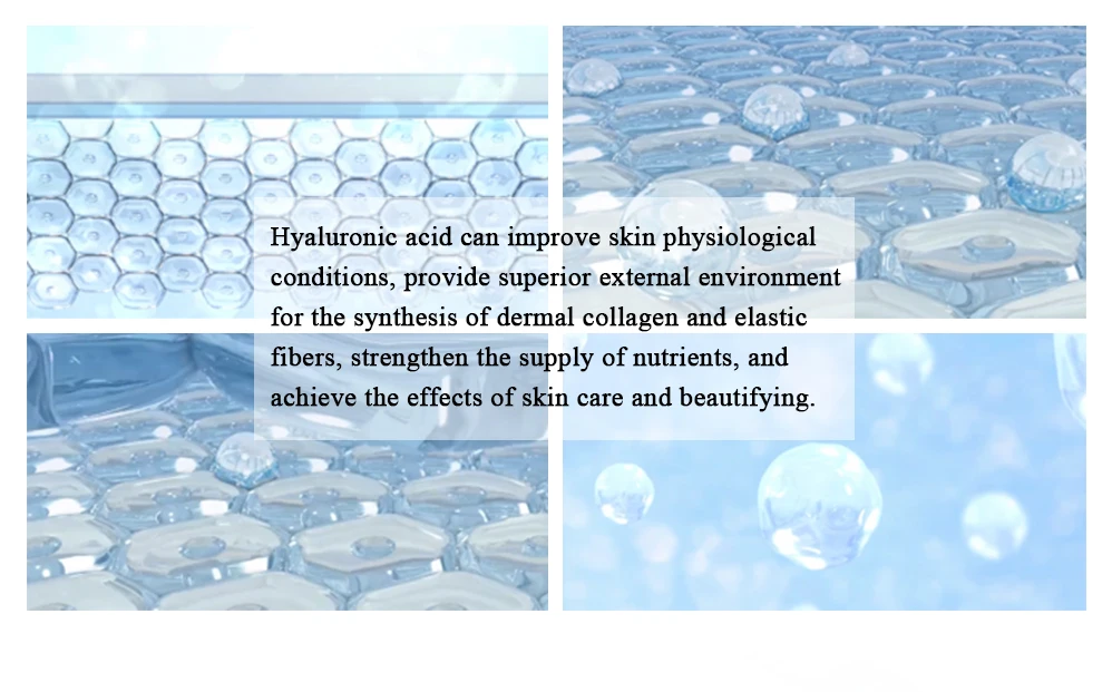 Гиалуроновая кислота может улучшить физиологическую кожу Условий, обеспечивают превосходную внешнюю среду для синтеза кожного коллагена и эластичных волокон, усиливают подачу питательных веществ и обеспечивают эффект ухода за кожей и украшения.